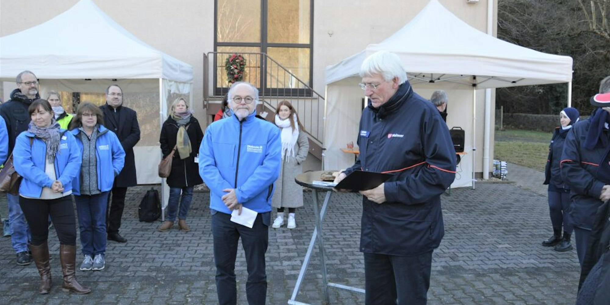 „Die Flut hat für finanzielle, emotionale und seelische Schäden gesorgt“, so Emanuel Freiherr von Boeselager, Malteser-Geschäftsführer in der Städteregion Aachen. „Wir eröffnen heute eine emotionale Anlaufstelle für diese Menschen.“ Dirk Voos vom evangelischen Kirchenkreis Bonn und Christian Hohmann von den Maltesern weihten das neue Hilfszentrum ein.