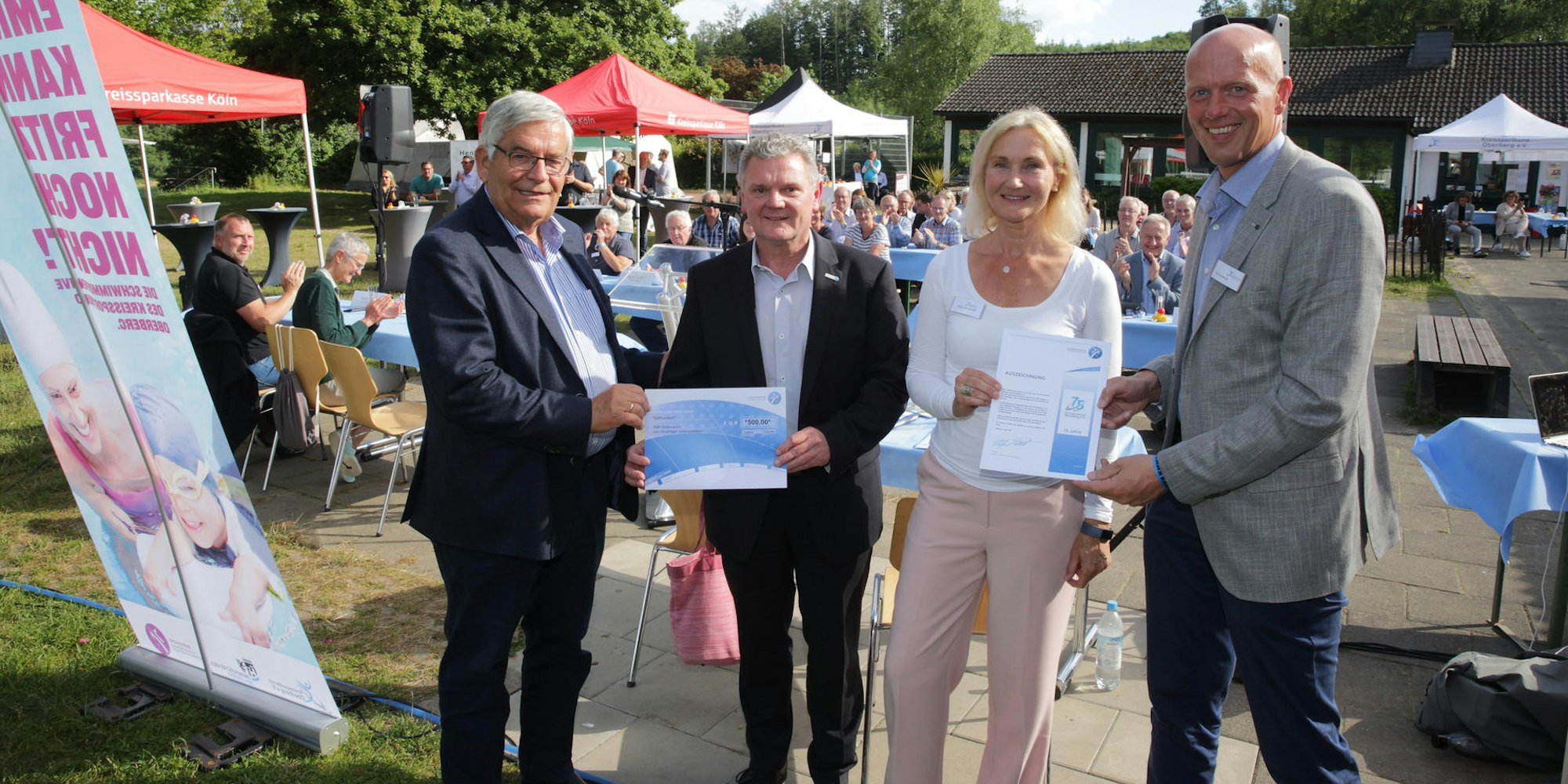 Aggertalsperre – Auf dem Jugendzeltplatz an der Aggertalsperre in Gummersbach hat der Kreissportbund Oberberg am Freitagabend seine Mitgliederversammlung und anschließend einen Jubiläumsempfang anlässlich seines 75-jährigen Bestehens durchgeführt. Unter den Gästen war neben zahlreichen Bürgermeistern aus dem Oberbergischen auch Stefan Klett, Präsident des Landessportbundes NRW, der zur Feier des Tages auch einen Scheck über 500 Euro für den Kreissportbund im Gepäck hatte.