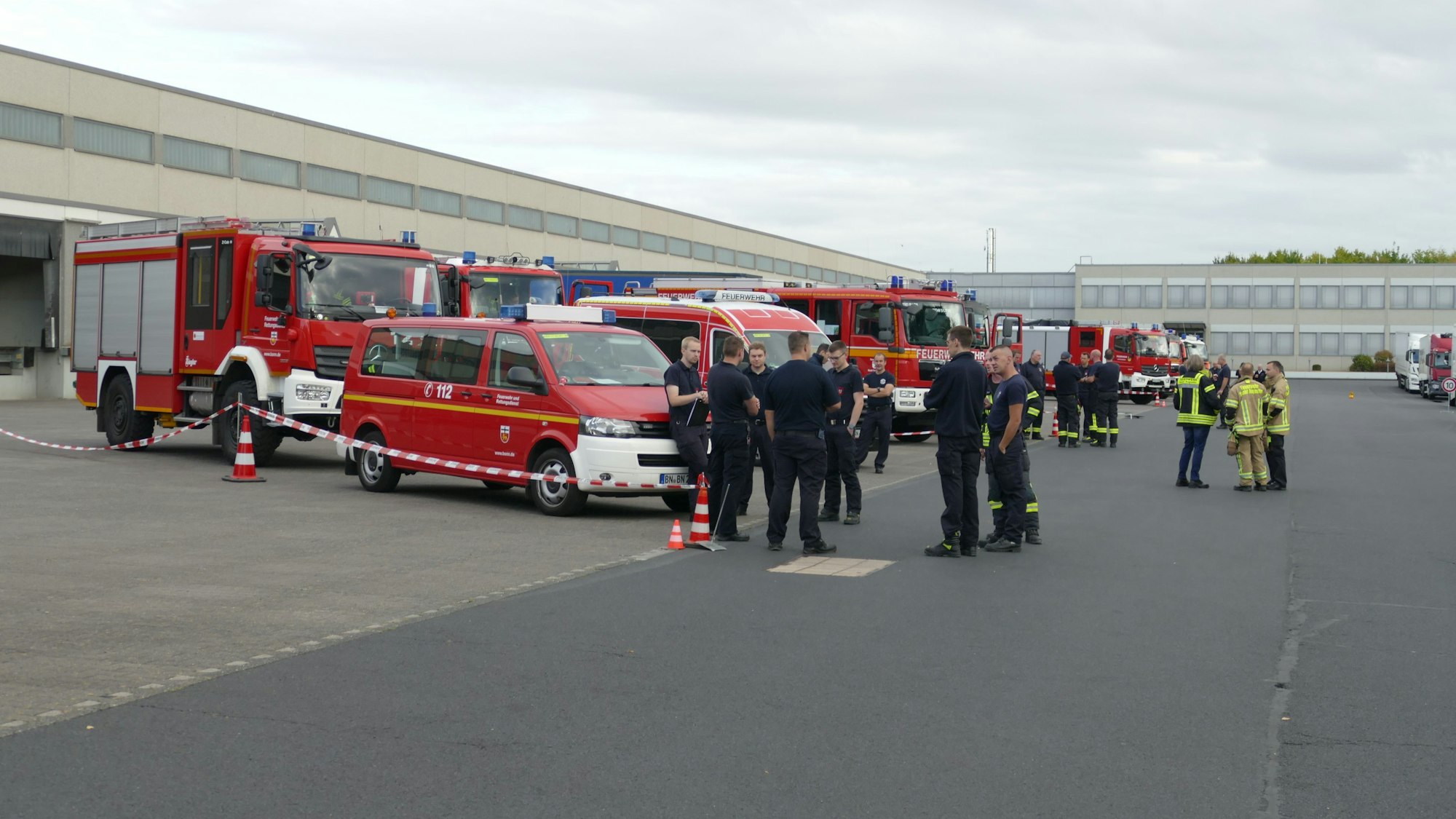 So fuhren die Feuerwehrleute zum Trainingsgelände des Instituts der Feuerwehr in Kreuzau-Stockheim bei Düren. „Das ist wie ein Abenteuerspielplatz für die Feuerwehr-Jungs und -Mädels. Man kann da verschiedene Einsatzszenarien durchspielen. Wir sind 150 Leute, die müssen wir koordinieren, ebenso müssen wir die Logistik transportieren und aufbauen – all das üben wir heute“, schilderte Gandelau.