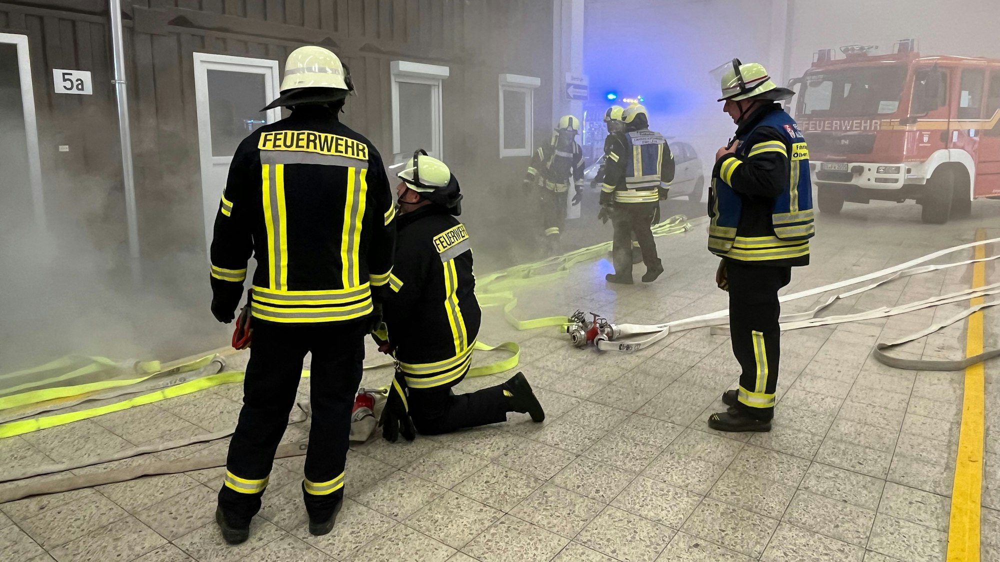 Auf dem Trainingsgelände gibt es mehrere nachgebaute Gebäude, in denen die Feuerwehren die Menschenrettung aus verrauchten Räumen probte. „Am Gerätehaus kann man vielleicht nur mal einen Schlauch durch den Flur ziehen – so eine Übung mit schlechter Sicht durch simulierten Rauch ist dagegen ganz was anderes“, sagte Gandelau, der ein positives Fazit zog: „Wir haben Fragebögen verteilt, in denen die Feuerwehrleute die Übung bewerten sollten. Nur so können wir Lehren daraus ziehen.“