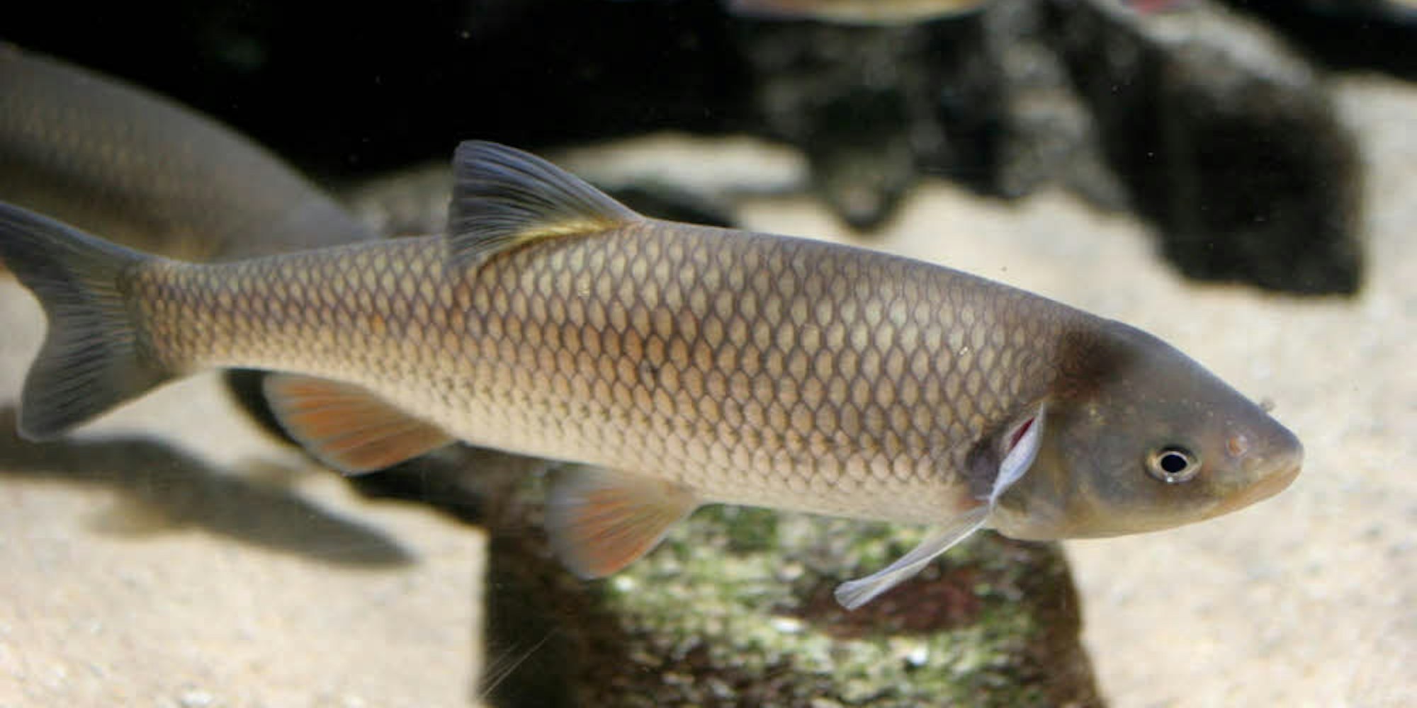 Der Spitzenreiter: Der Döbel kommt sehr häufig in der Erft vor. Er frisst Schnecken, Larven, Würmer und Muscheln, aber auch kleine Fische und Krebse.
