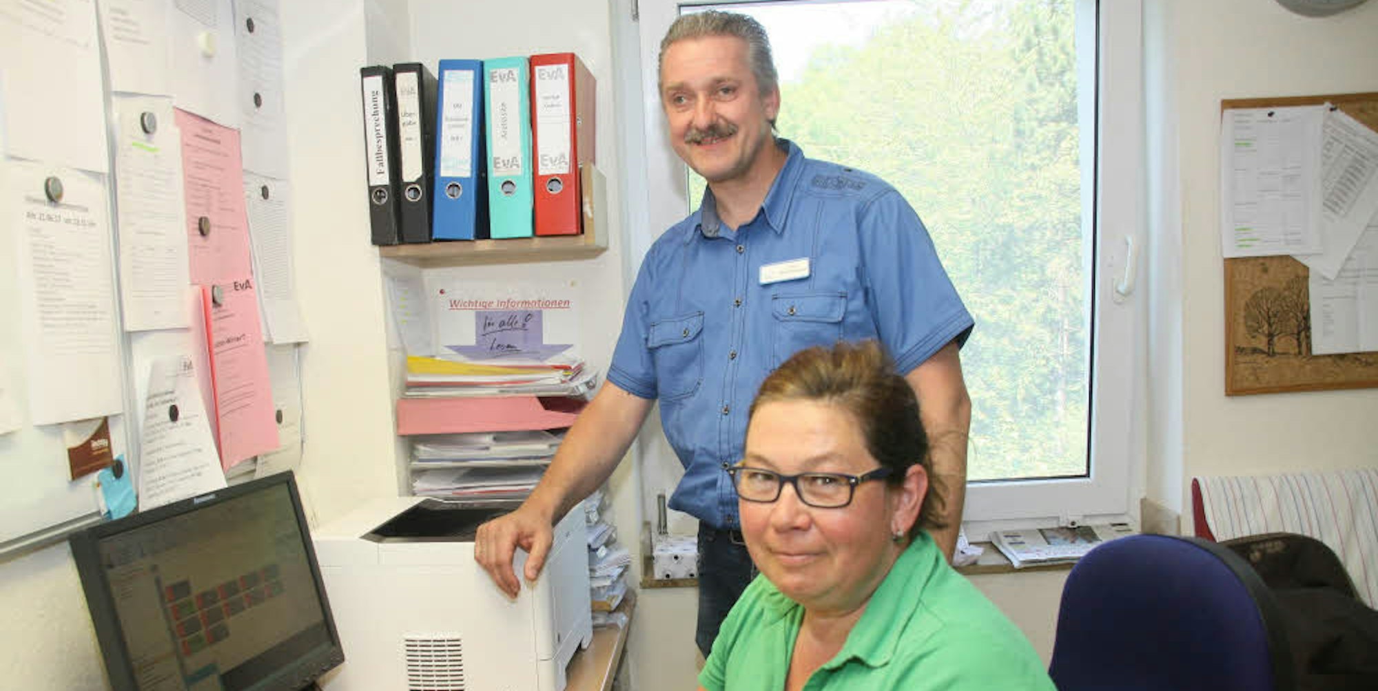 Anke Fues-Miehl und Arno Brauckmann im Evangelischen Alten- und Pflegeheim bei der Dokumentationsunterweisung.