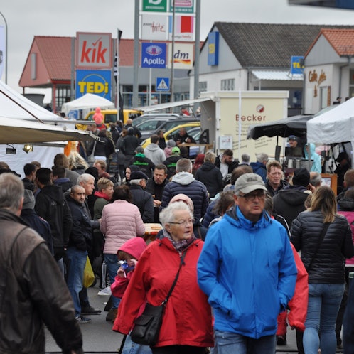 Komplett ausgebucht waren die freien Flächen, die sich vom Kreisverkehr an der Hüttenstraße bis zur Bühne hinter dem Obi zogen, auf der am Nachmittag die BAP-Coverband MAM auftrat.