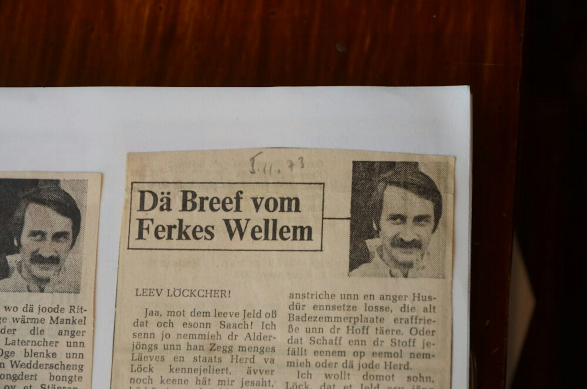 de Jrane jejange: „Wellem, offstet wells oder net, die Zegge senn endjültich verbej, wo all Weiches donneschtahs jätt van os Zwei en dr Zeidung stonn! Scheck dich drenn unn jangk nooh baal sebbenzich Johr Breef-Schrieverej endlich en dr wohlverdiente Ruhestand!“ Ich denken unn hoffen, leev Löckcher, dat en deser Zegg esu zemmelich alles op de Tapet kunn os, wadrövver hee op ose Eefeler Dörper esu jebubbelt unn jeschwaht wid, wa?