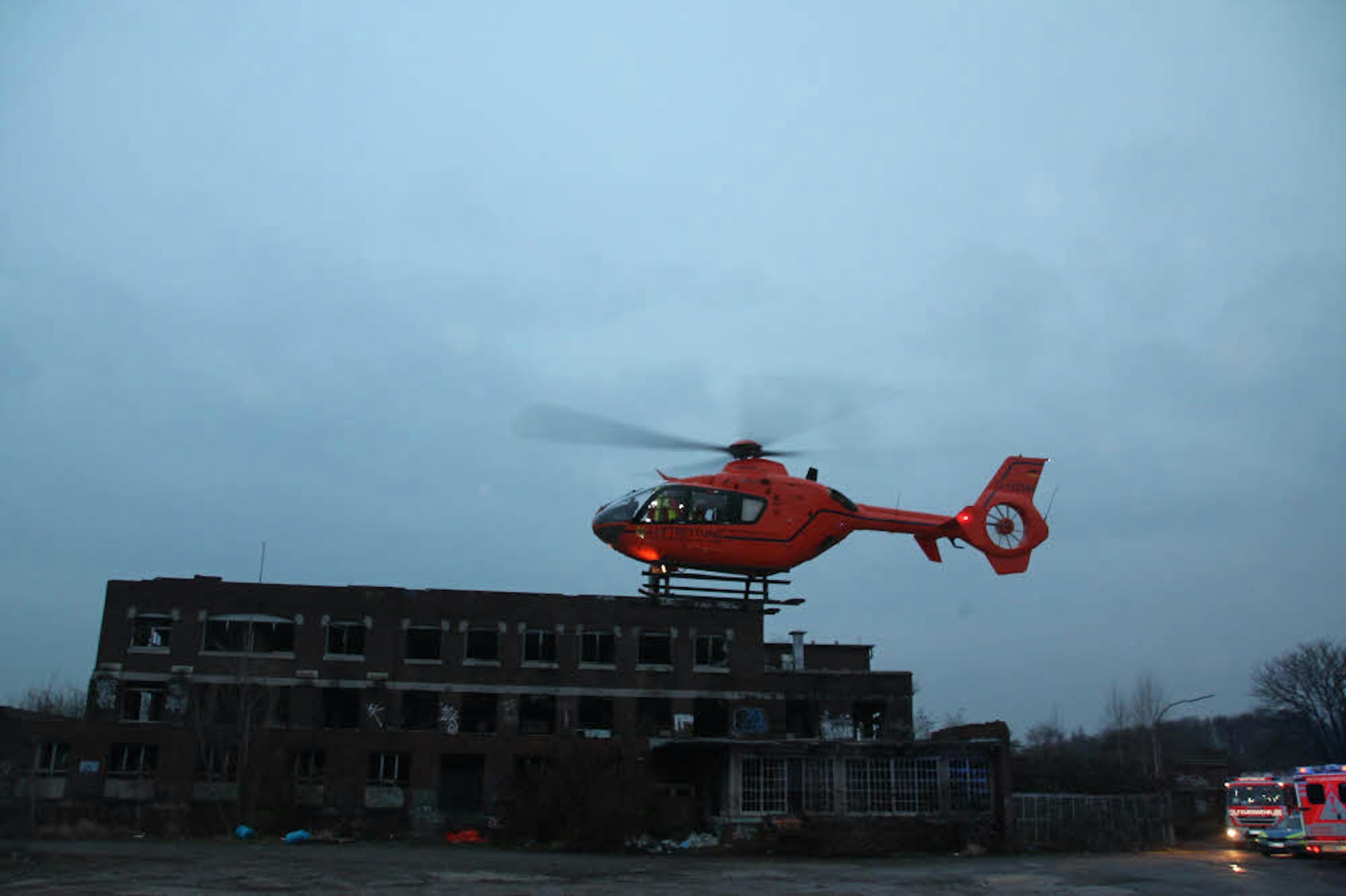 Der Unfall hatte sich weit abseits des Eingangstors in einem nur schwer zugänglichen Abschnitt des alten Industriegeländes ereignet, erklärte Einsatzleiter André Bach. Sofort wurde auch ein Rettungshubschrauber angefordert.