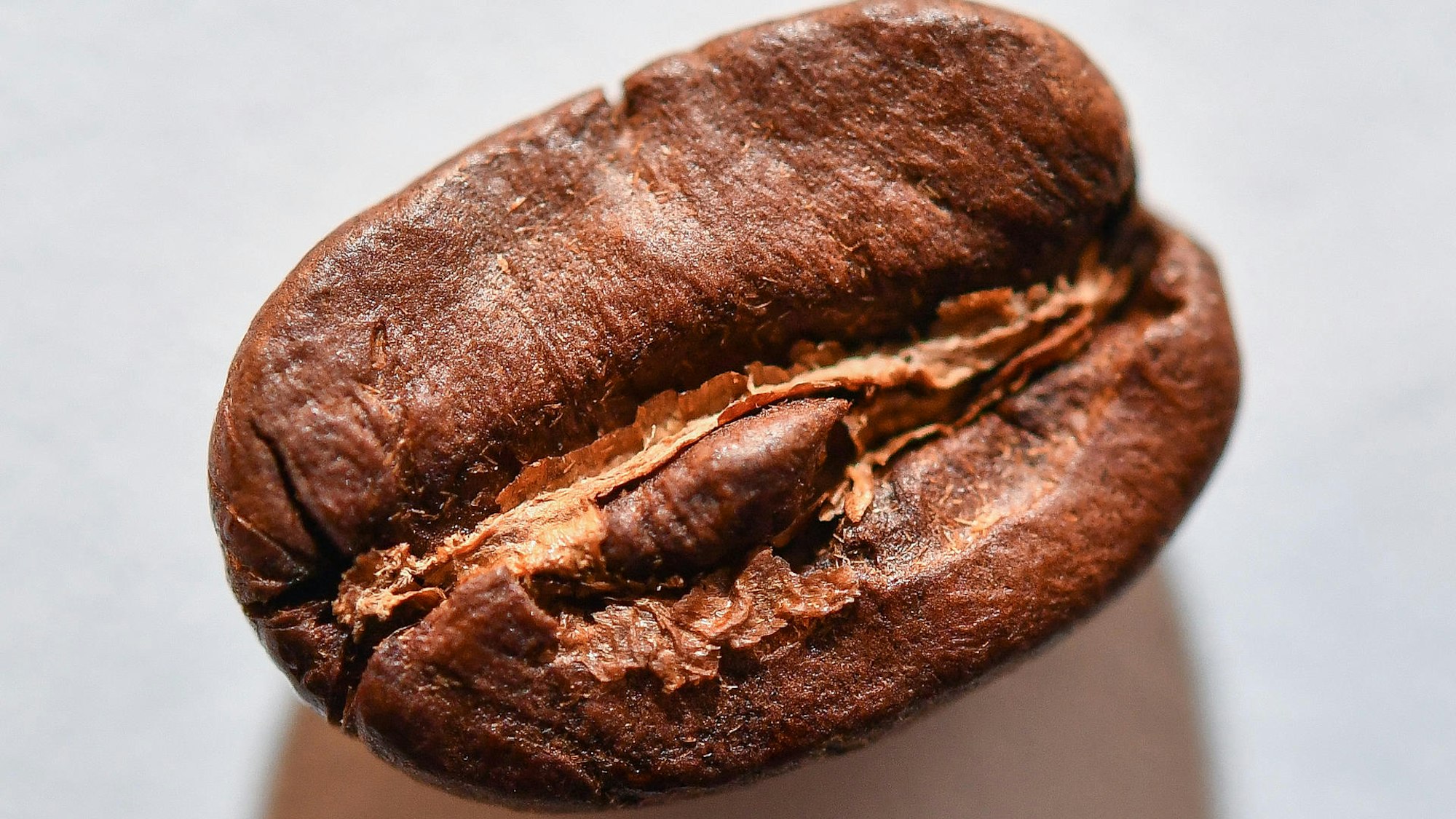 Eine Kaffeebohne im Zoom