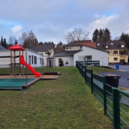 Das Klettergerüst steht in dem neu geschaffenen Spielbereich.