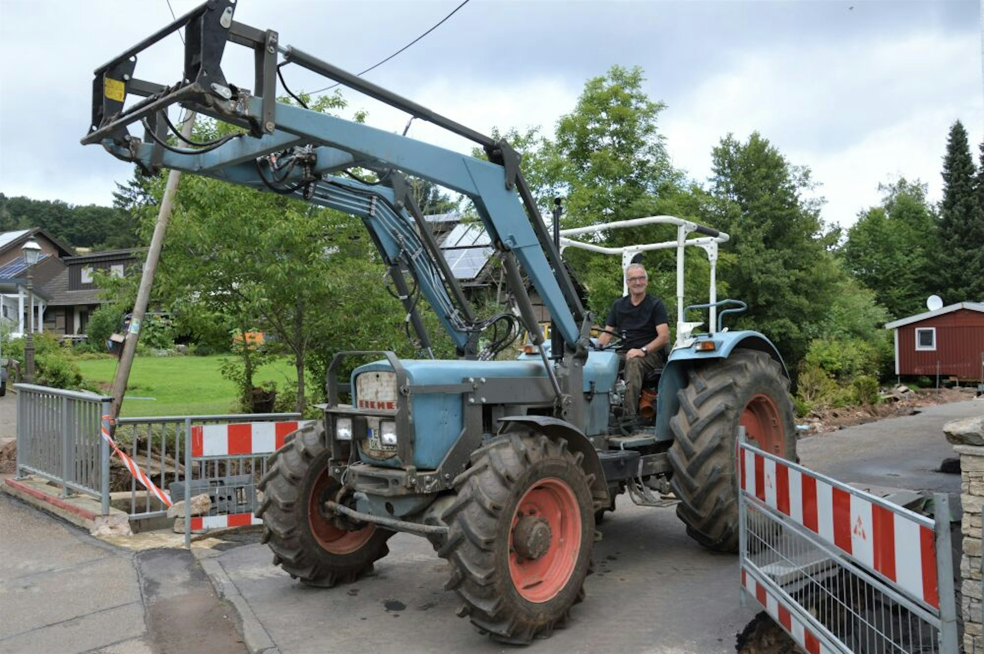 Alfons Klöcker hat auch noch an seinem Haus und Grundstück viel zu tun. Schließlich stand bei ihm das Wasser zwei Zentimeter vor dem Erdgeschoss. Im Keller wird gerade gearbeitet. Die Einfahrt muss auch noch erneuert werden. „Bis Ende nächster Woche wird es hier besser aussehen“, sagt Alfons Klöcker und schwingt sich wieder auf seinen Traktor.