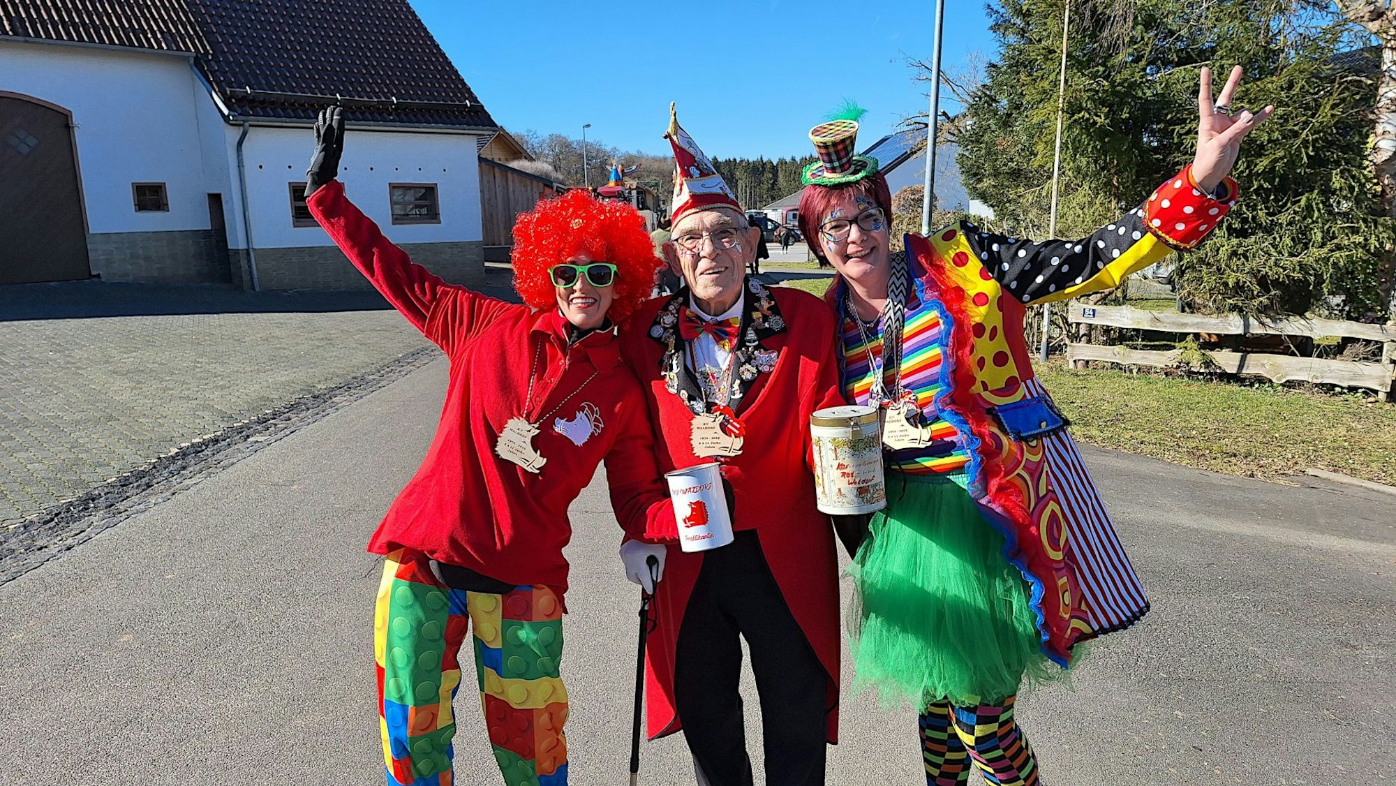 Wie gut sie aufgestellt sind, zeigen die Waldorfer beim jecken Lindwurm durchs Dorf: Sieben von neun Gruppen kamen aus Waldorf selbst, zwei waren aus Ripsdorf und Dollendorf mit eigenem Mottowagen angereist. Auch am Rand des Zochweges konnte man ein Beispiel für die Generationenfolge erleben: Klaus Esser, Waldorfer Karnevalsurgestein und mittlerweile 89 Jahre alt, hat eine „Praktikantin“ fürs Kötten gefunden. Caro Jentges beherzigt die Tipps des Profis. Esser hat immerhin 19 Jahre lang die Sammelbüchse geschwungen und um einen Obolus für die Zochkasse gebeten: „Immer freundlich, aber auch hartnäckig sein!“ Nebenbei bemerkt ist schon Essers Urenkel im KV Waldorf aktiv dabei.