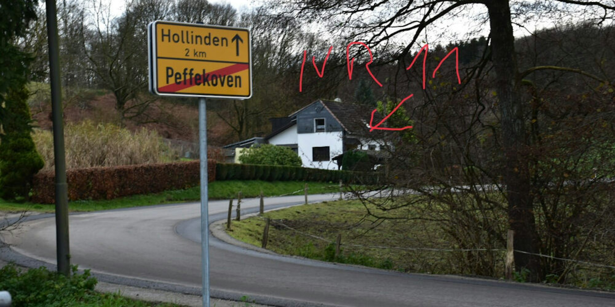 Die Lage seines Hauses hinter dem neuen Ortsausgangsschild von Peffekoven hat Leser Jörg Küpper gekennzeichnet.