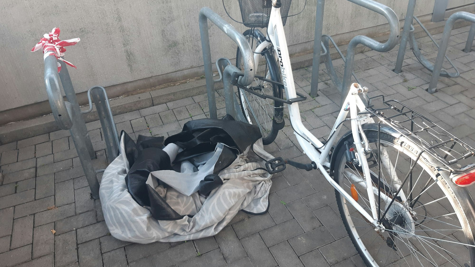 Die Fahrradanlage wird von Obdachlosen auch als Schlafstätte genutzt, wie diese Decken zeigen.