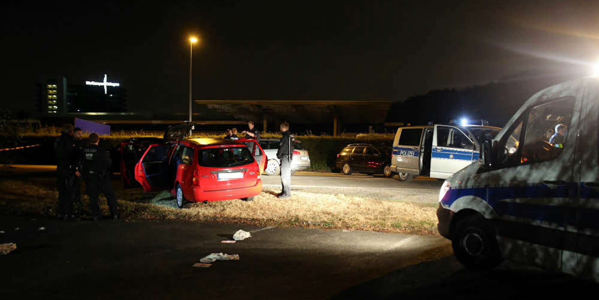 Tatort: Mehrere Fahrzeuge stoppten die Ermittler nach dem Angriff.