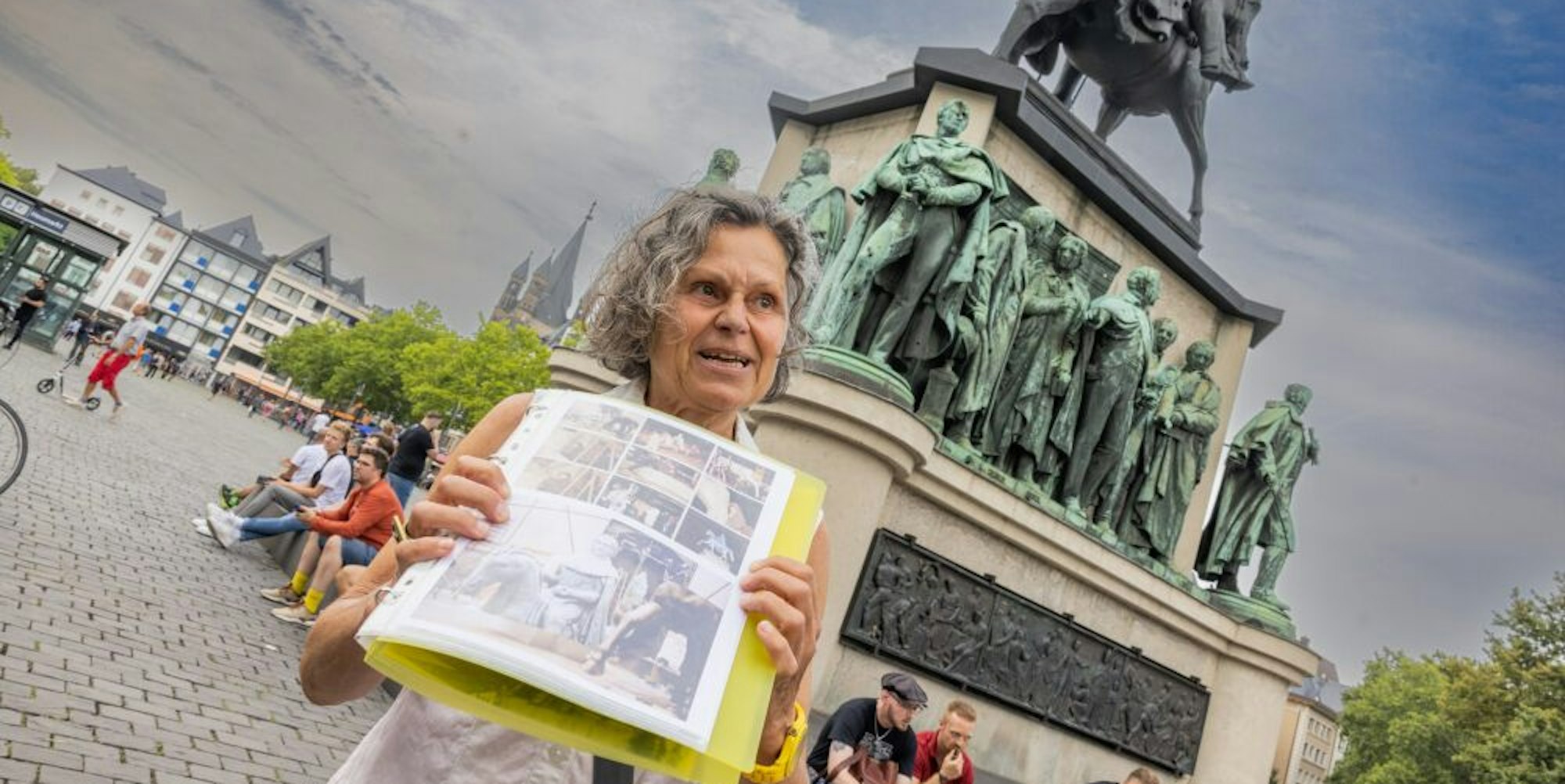 Die Kunsthistorikerin Dagmar Lutz während einer Tour auf dem Heumarkt.