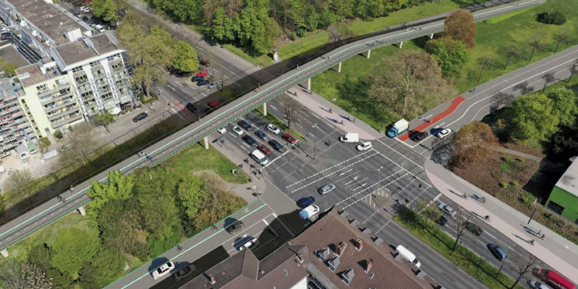 Eine neue Brücke für Radler soll über die Universitätsstraße nahe des Aachener Weihers führen.