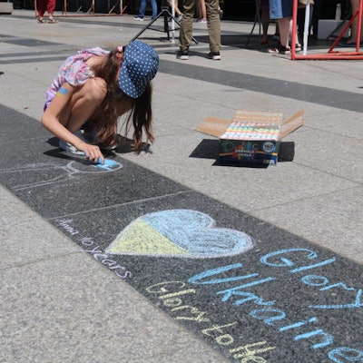 „Hallo Sonne“, sangen Kinder, die am NRW-Bildungsprogramm für Grundschule „JeKits – Jedem Kind Instrumente, Tanzen, Singen“ teilnehmen, auf der Torburgbühne. „Am Eigelstein es Musik“, stimmte Travestie-Künstler Sophie Russel auf der Mühlenkölschbühne neben dem Rewe an.