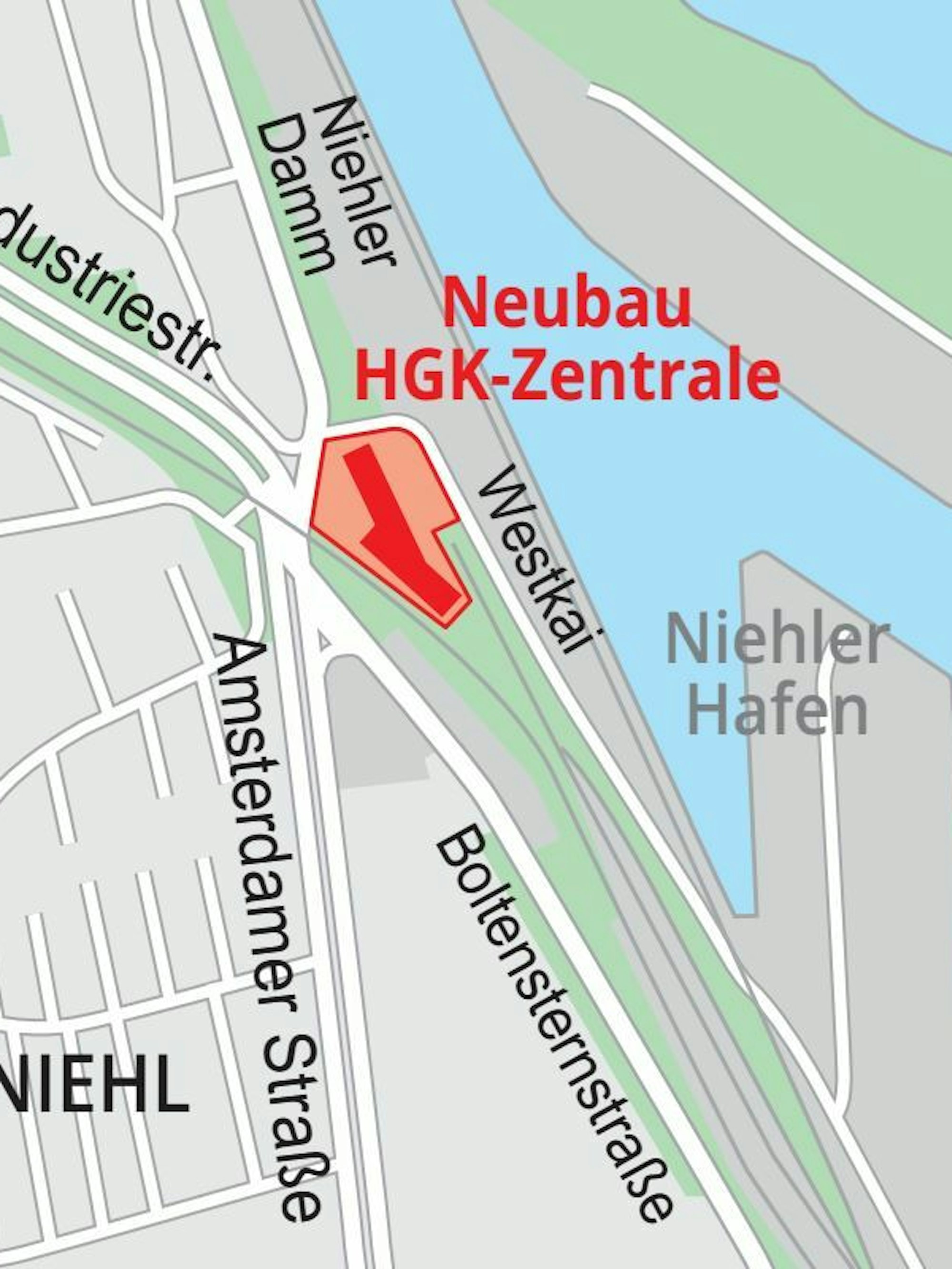 Köln – 2014 verkaufte die Häfen und Güterverkehr Köln AG (HGK) ihren Firmensitz, das alte Hafenamt im Rheinauhafen, und bezog gemietete Büros in Braunsfeld. Bald steht wieder ein Umzug an: Bis Sommer 2023 baut der Logistik-Konzern, der zu den Stadtwerken gehört, am Niehler Hafen eine neue Zentrale. Am Mittwoch fand auf dem 3000 Quadratmeter großen Areal am Westkai der erste Spatenstich für das Projekt statt. Einen Steinwurf entfernt wurde 1925 das erste Hafenbecken eingeweiht. Bereits im Sommer 2023 soll der 22,3 Millionen Euro teure Bau fertig sein und auf 8500 Quadratmetern Platz für 270 Arbeitsplätze bieten. Neben der HGK-Verwaltung wird hier künftig unter anderem die Eisenbahn-Leitstelle untergebracht.