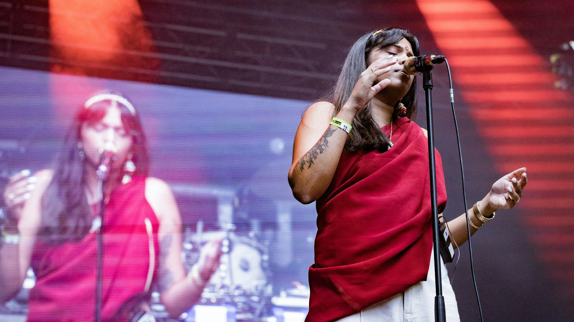 „Vavunettha“ ist eine Musikerin aus Köln mit Wurzeln in Sri Lanka. Sie trat bei der Arsch-Huh-Veranstaltung auf den Ringen auf.
