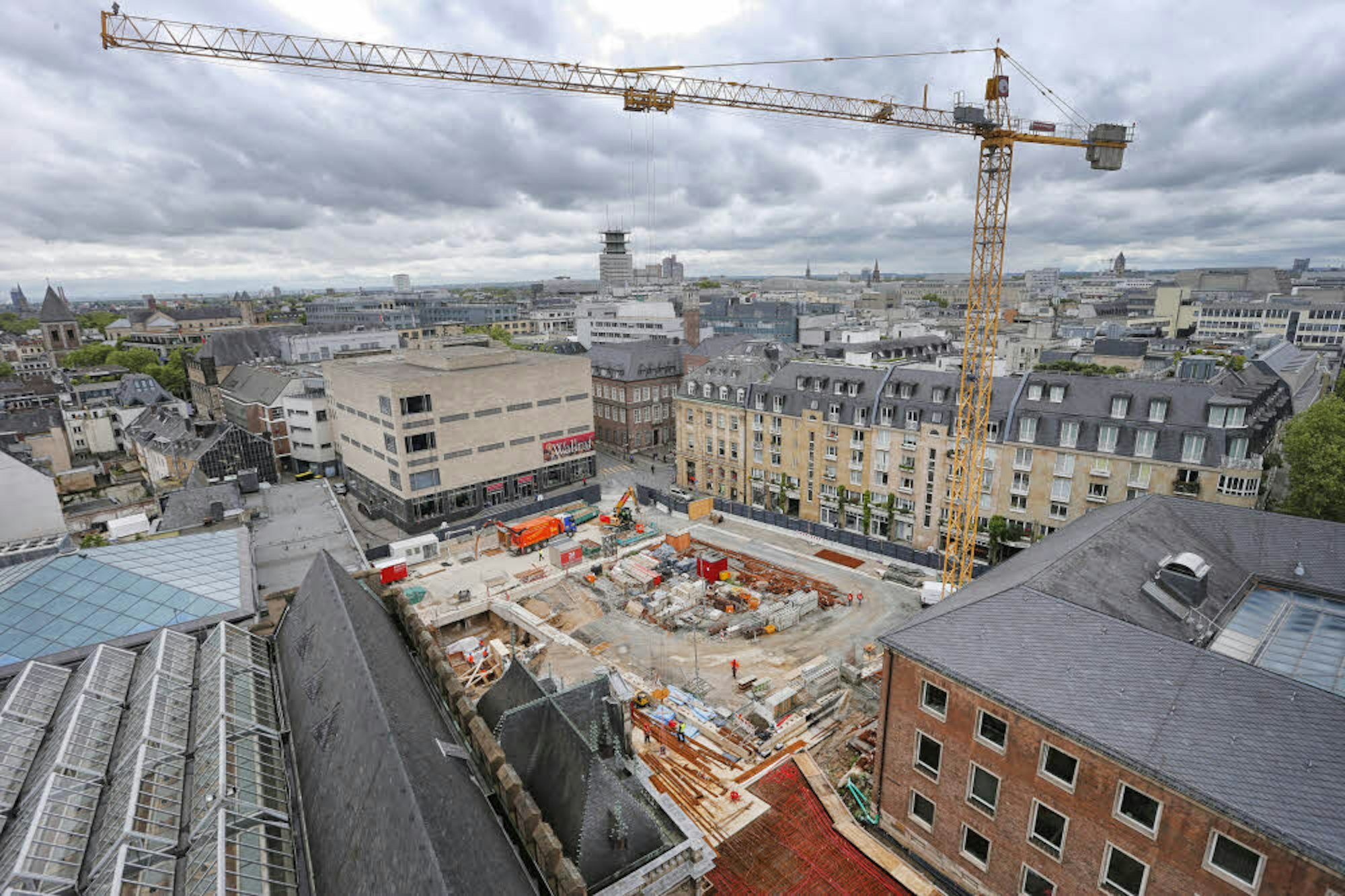Im Bau: Die „Miqua“-Baustelle vom Turm des Rathauses fotografiert.