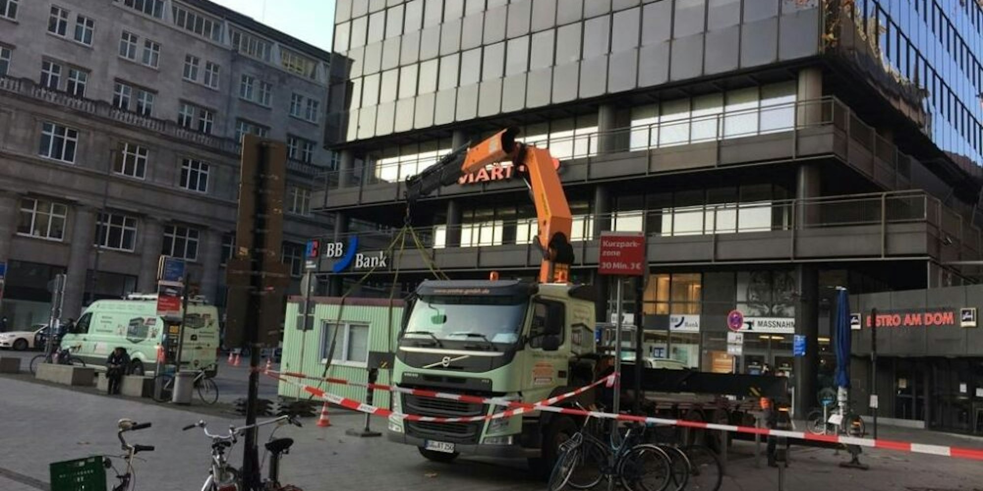 Köln – Bevor sich Ratten und Mäuse in den ausgedienten Containern der Bundespolizei am Seiteneingang des Hauptbahnhofes so richtig gemütlich machen, kam am Dienstagmorgen der Kran und hievte die Container auf einen Lastwagen. „Wir brauchen die Container nicht mehr. Sie haben für uns ausgedient“, hatte eine Sprecherin der Bundespolizei schon vor vielen Wochen gesagt. Doch die Deutsche Bahn brauchte offensichtlich längere Zeit, um die in die Jahre gekommenen Behälter fortzuschaffen.