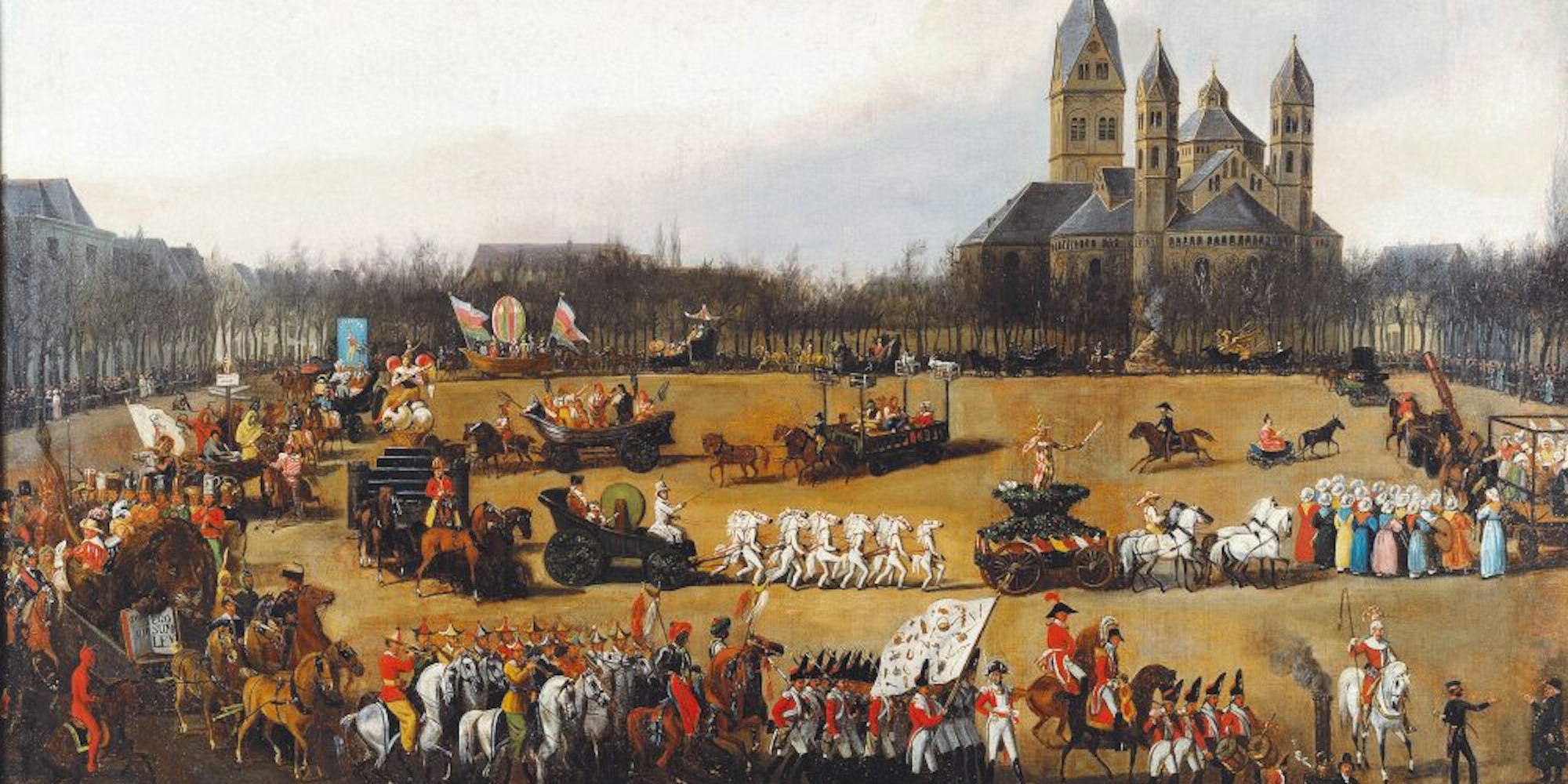 Held Carneval: Simon Meister malte den Rosenmontagszug auf dem Neumarkt 1836.