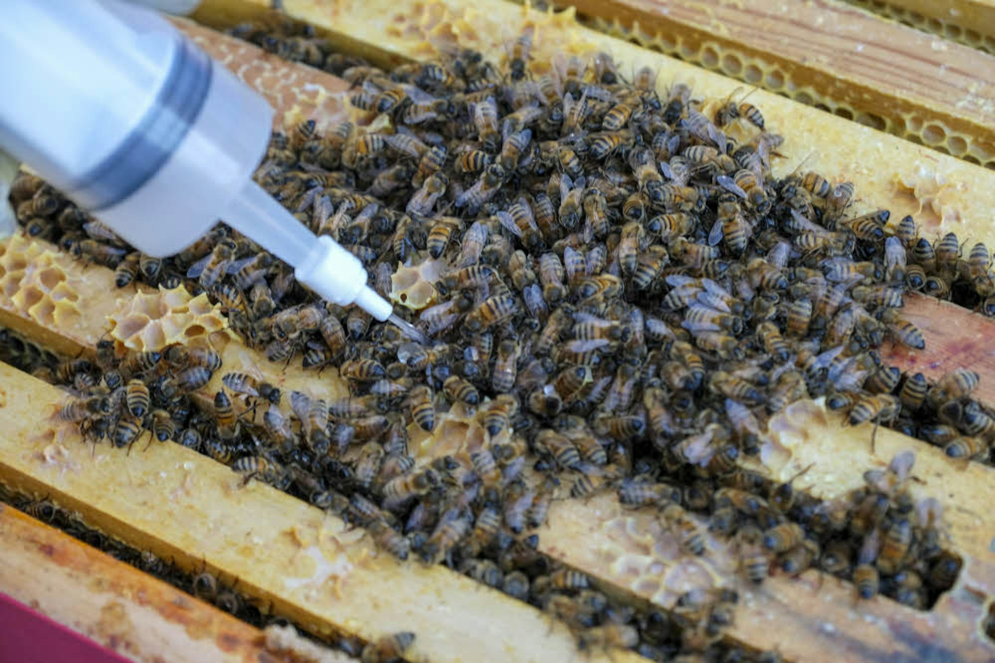 Mit Oxalsäure rückt die Imkerin der Varroa-Milbe zu Leibe. Der Schädling setzt sich den Bienen auf den Rücken und saugt sie aus. Doch Säure verträgt die Milbe nicht – die Biene schon.