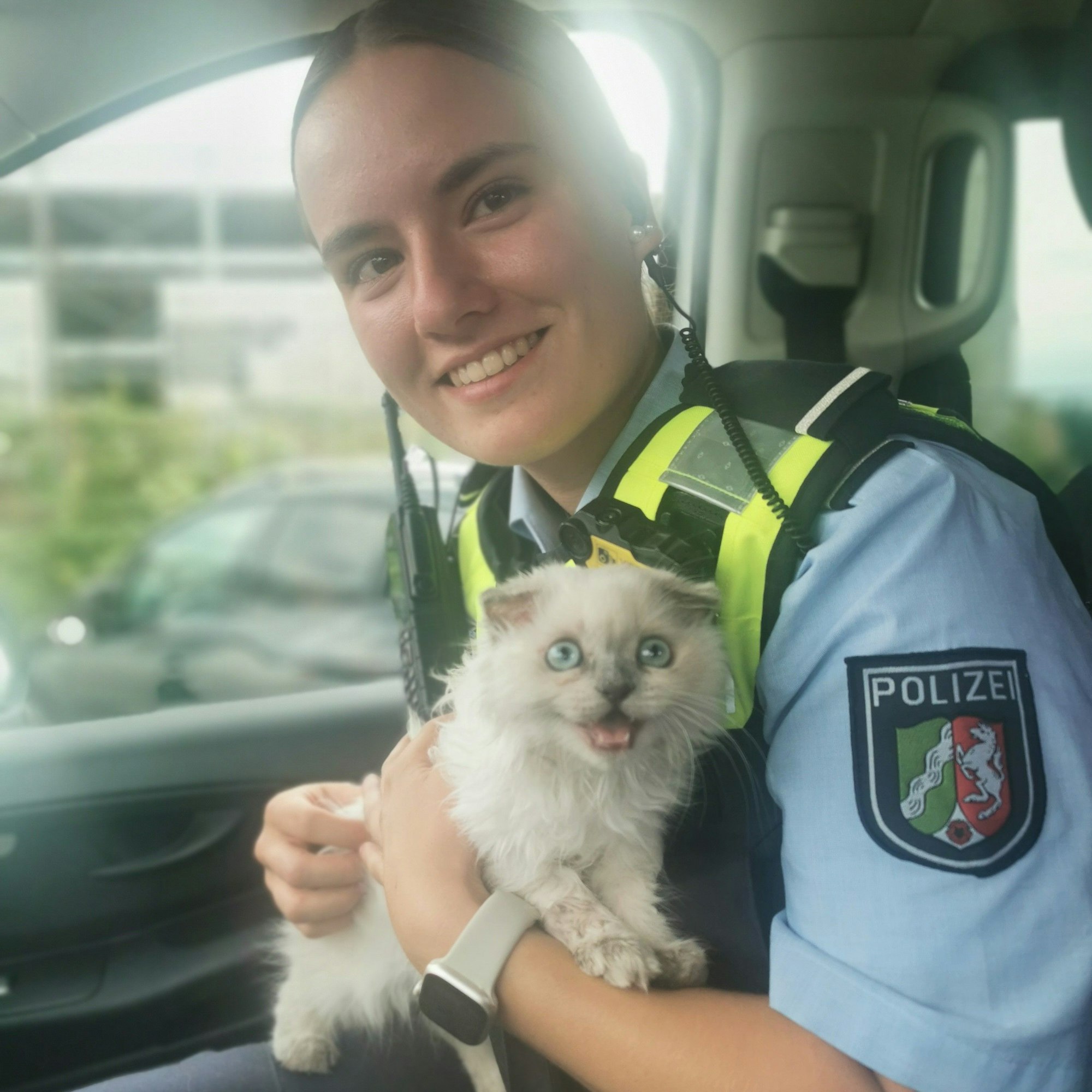 Aus heißem AutoKölner Polizistinnen retten kleine Katze vor Hitzetod
