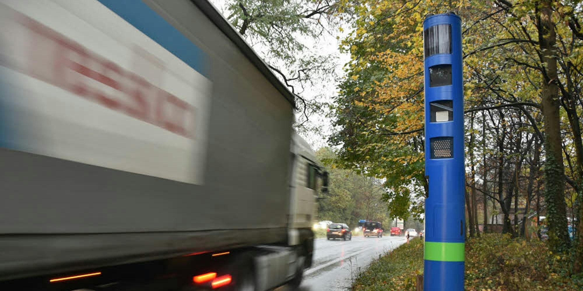 Doch seit wenigen Wochen hat sich etwas geändert. Auf einmal leuchten kurz hinter dem 50er Schild schlagartig Bremslichter auf. Genauer gesagt an der Stelle, an der diese neue große Säule ins Blickfeld rückt. Vier Meter hoch. Dunkle Verglasungen lassen Kontrollgeräte dahinter vermuten. Ein Blitzer? So sieht es. Doch so ist es nicht. Es handelt sich vielmehr um die erste stationäre Mautkontrollsäule für Bundesstraßen in NRW.