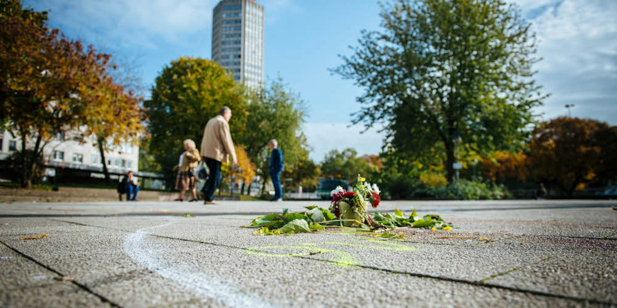 Spuren der Gewalt: Am Tatort auf der Mitte des Ebertplatzes haben Passanten Blumen abgelegt