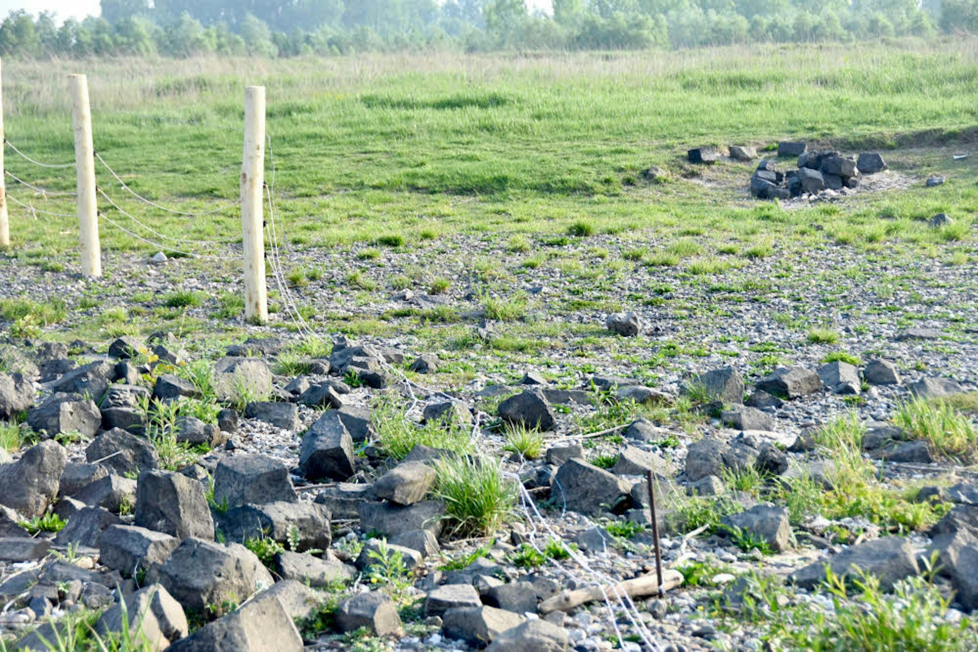 Die Weideflächen sind durch Zäune getrennt, im Westen befinden sich etwa vier Hektar, im Osten etwa 17 Hektar. Die Flächen sind durch den zusätzlichen Zugang der Anwohner zum Rhein voneinander getrennt, es ist die Verlängerung des Werthwegs. Parallel zum Rhein ist eine permanente Einzäunung vorgesehen, quer zum Rhein bis zum Ufer ist eine saisonale Einzäunung geplant. Von November bis März wird diese offen bleiben. Weiterhin besteht ein unbefestigter Weg entlang der Weidefläche, somit ist ein Rundweg Richtung Osten vorhanden. (jtb)