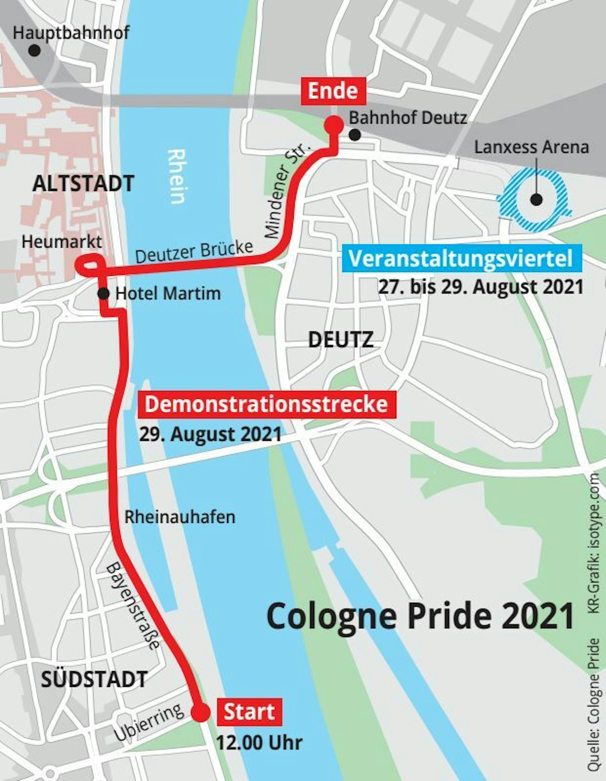 Die gelockerten Corona-Schutzbestimmungen spielen den Veranstaltern des Christopher Street Days (CSD) in die Karten. Die Demonstration am Sonntag, 29. August, könnte weitaus größer werden als ursprünglich gedacht. „Wir erhalten stündlich mehr Anmeldungen“, sagt Hugo Winkels. Er ist Sprecher des Vereins Kölner Lesben- und Schwulentag (KLUST), der den CSD und das darum platzierte Cologne Pride Festival veranstaltet.