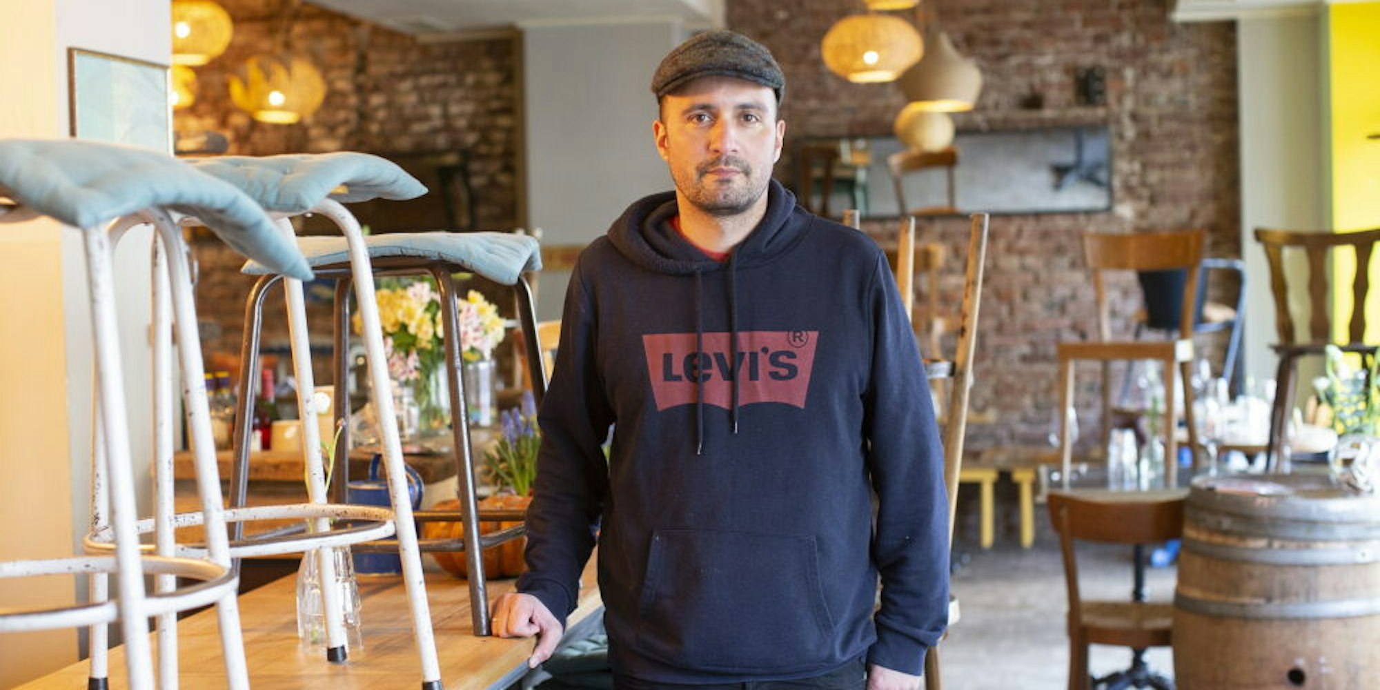 Betreiber Daniel Rabe steht in der „Brasserie“ nahe des Chlodwigplatzes. Er macht das Lokal dicht.
