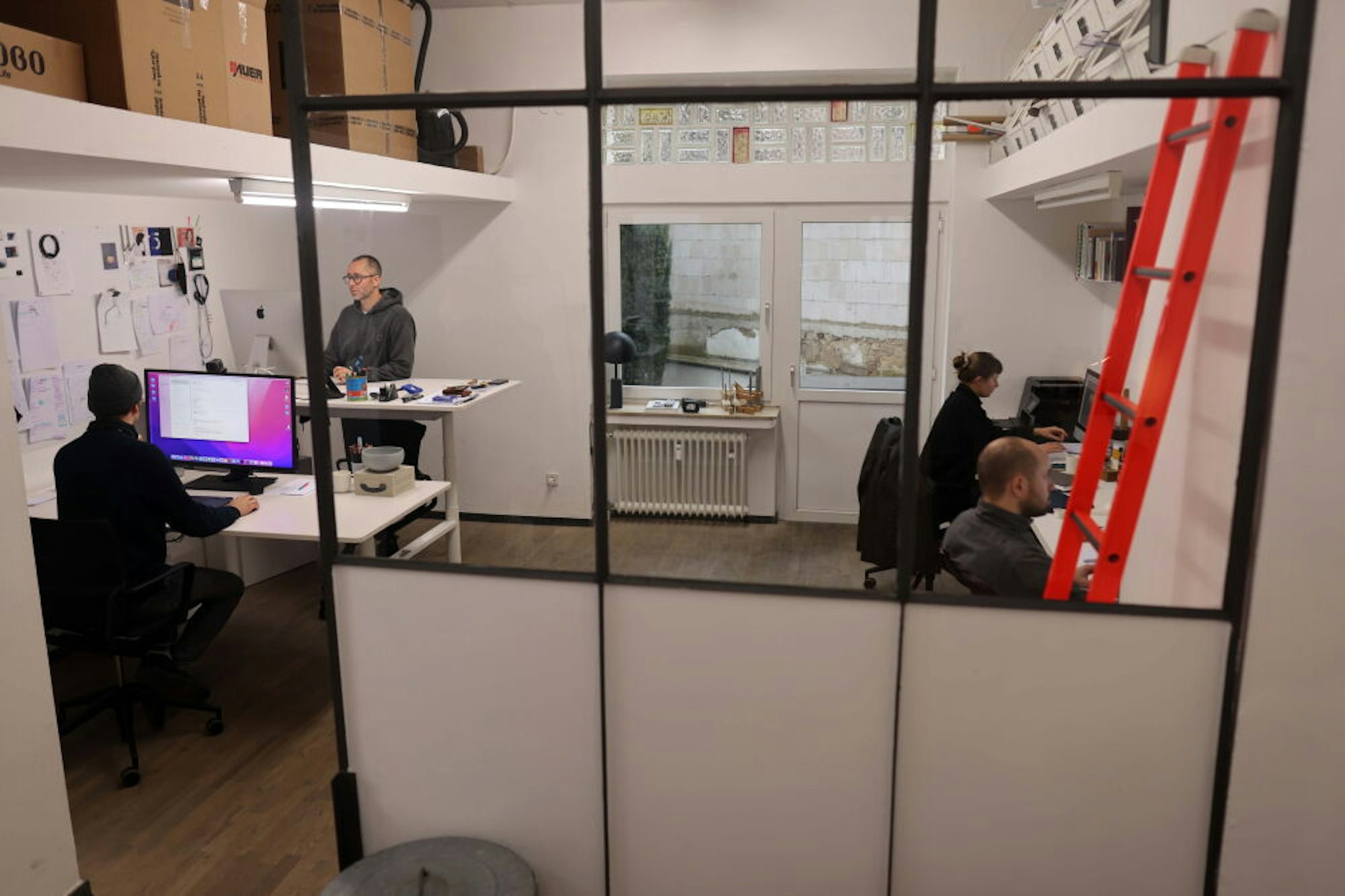 An PCs entstehen erste Entwürfe, an den Pinnboards hängen Zeichnungen und Inspirationen für Neues, vom Polster bis zum Wasserhahn.