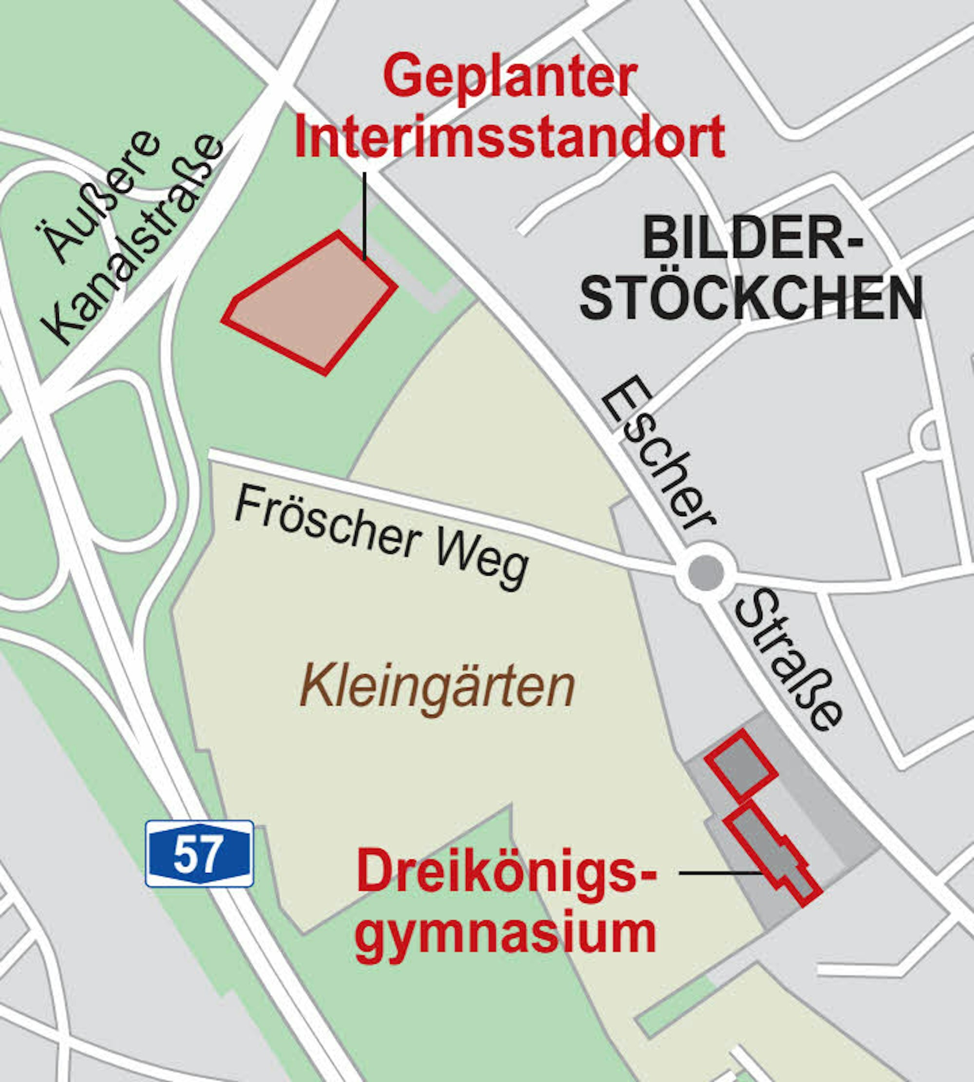 Das Dreikönigsgymnasium soll während der Generalsanierung in Schulcontainer in den Bürgerpark Nord ziehen.