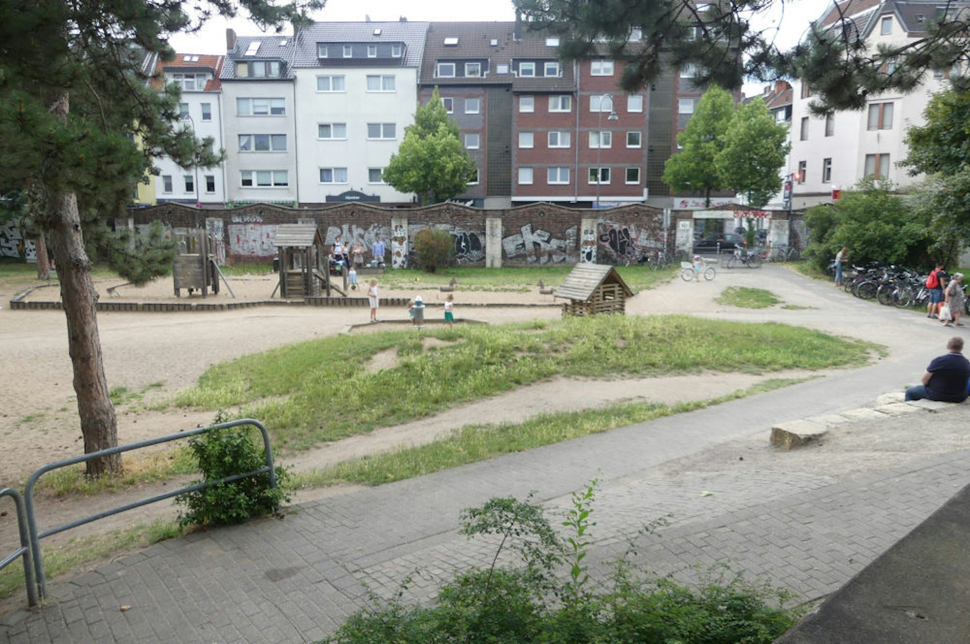 Ehrenfeld – Neben dem kleinen „Kwatta-Park“ an der Roßstraße ist der Leo-Amann-Park am Bürgerzentrum Ehrenfeld der einzige Park im Stadtteil. Er ist zwar klein, aber oho: Auf relativ übersichtlicher Fläche bietet er allerhand Nutzungsmöglichkeiten: Es gibt einen Spielplatz, mehrere Ruhezonen mit Bänken, eine Wiese mit Slacklinepfählen und einen Bolzplatz.