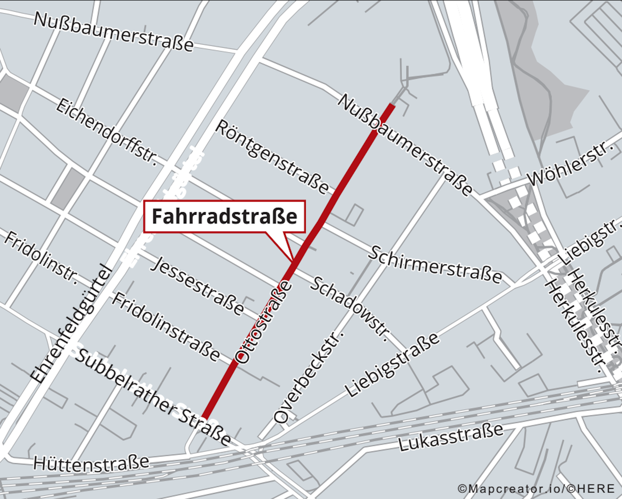 Alles gut also für Radfahrer? Mitnichten. Schaut man sich die Fahrradstraßen genauer an, wird deutlich, dass einige nur wenige Meter lang sind, manche abrupt enden oder auf viel befahrene Straßen münden. Positiv hervorzuheben ist allerdings die Ottostraße. Die baumbeschattete Allee in Neuehrenfeld ist zwischen Subbelrather Straße und Nußbaumerstraße als Fahrradstraße gekennzeichnet.