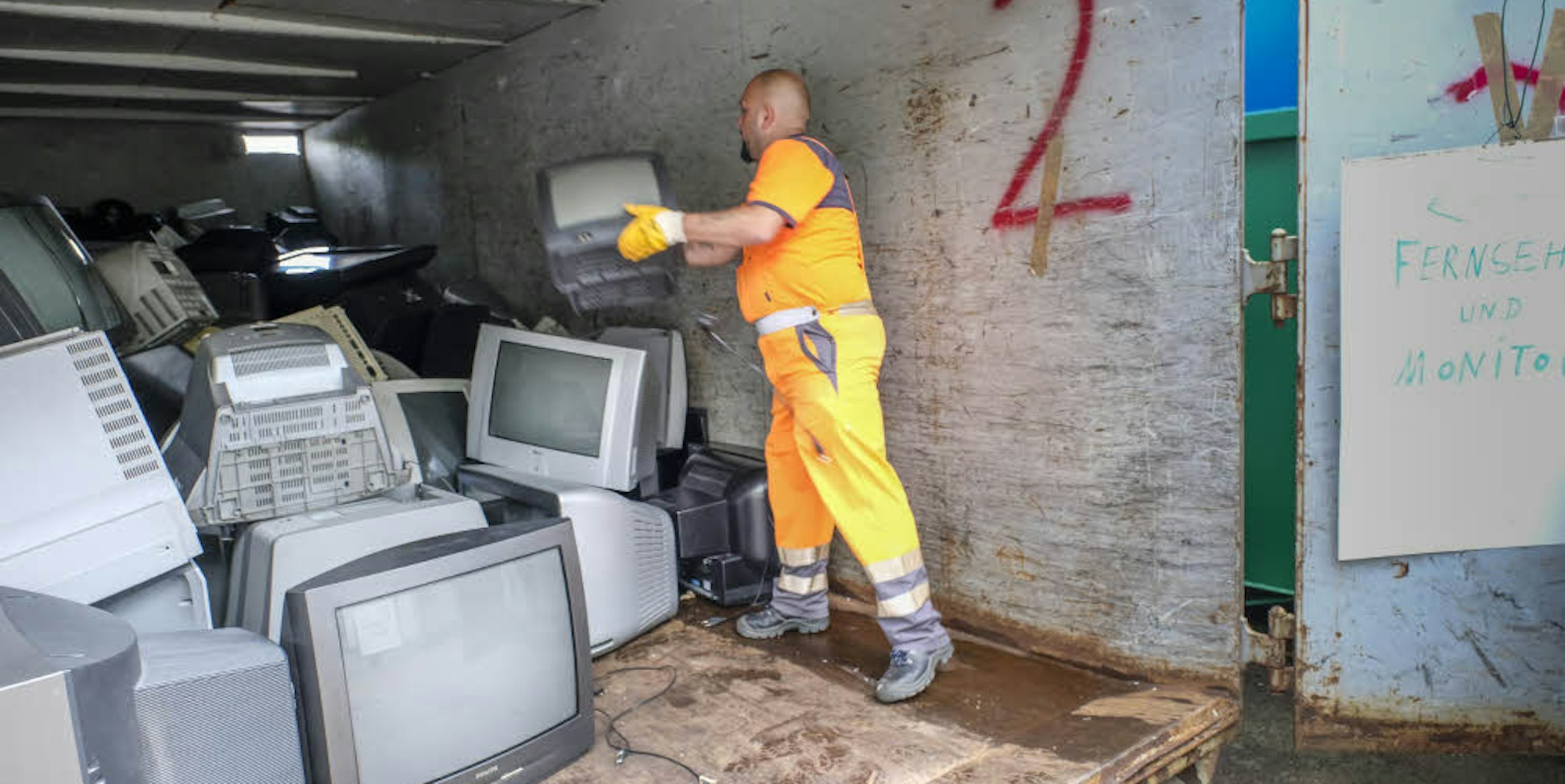 Die Rücknahmeverpflichtung sieht vor, dass Händler ab einer Fläche von über 400 Quadratmetern Kleingeräte wie einen Haartrockner zurücknehmen müssen. Eine Rücknahmepflicht für größere Geräte gibt es nur, wenn Kunden ein gleichwertiges Neugerät kaufen. Weil manchem der Weg zu einer Sammelstelle zu weit ist, landet Ausrangiertes erst in der grauen Tonne und schließlich in der Verbrennung. Dort bleibt zwar trotz Temperatur von mehr als 1000 Grad Wertvolles übrig, doch die Stadt sucht nach neuen Wegen, mehr Annahmestellen zu schaffen.