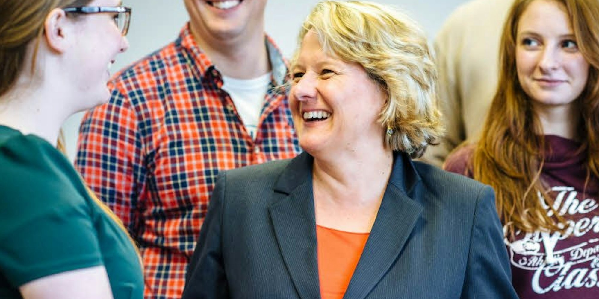 Schlüsselkompetenz Kommunikation: Ministerin Schulze im Gespräch mit Studenten der Fachhochschule Köln.