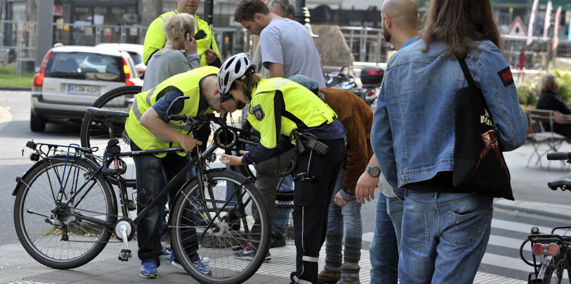Kontrolle am Chlodwigplatz: Regelmäßig überprüfen Polizeibeamte Radfahrer