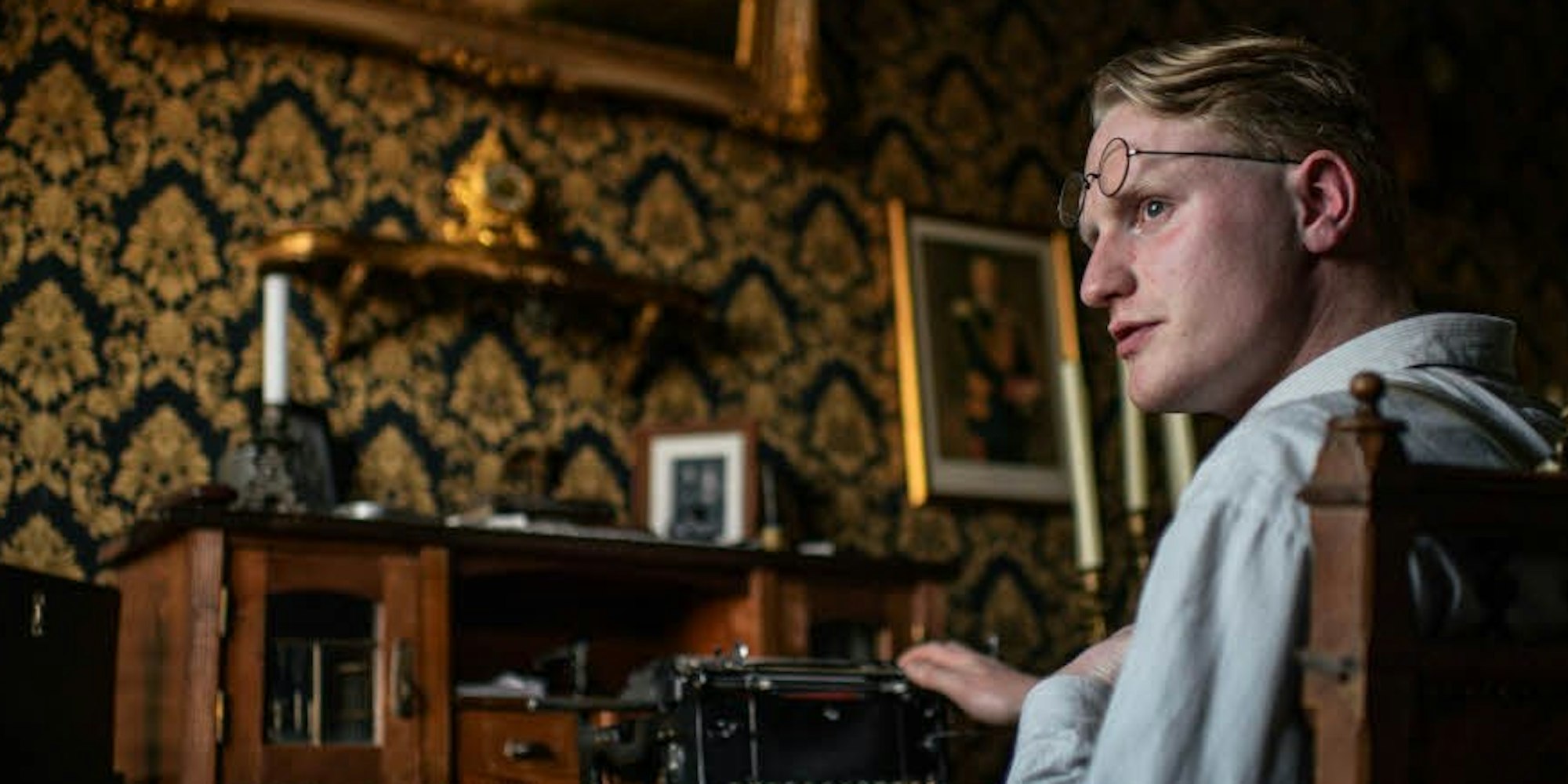 „Das sieht ja aus wie bei meiner Oma“ ist der zweite Satz. Florian Schmitz ist 26. In seiner grauen Tweed-Hose steckt ein helles Hemd, darüber Hosenträger, draußen trägt er eine Schiebermütze. Seit 2004 beschäftigt sich Schmitz mit der Zeit um 1900. „Ich mache etwas, wozu nicht jeder den Mut hat“, sagt Schmitz. Nur auf einen Knopf zu drücken und etwas ist fertig, das sei wenig aufregend.