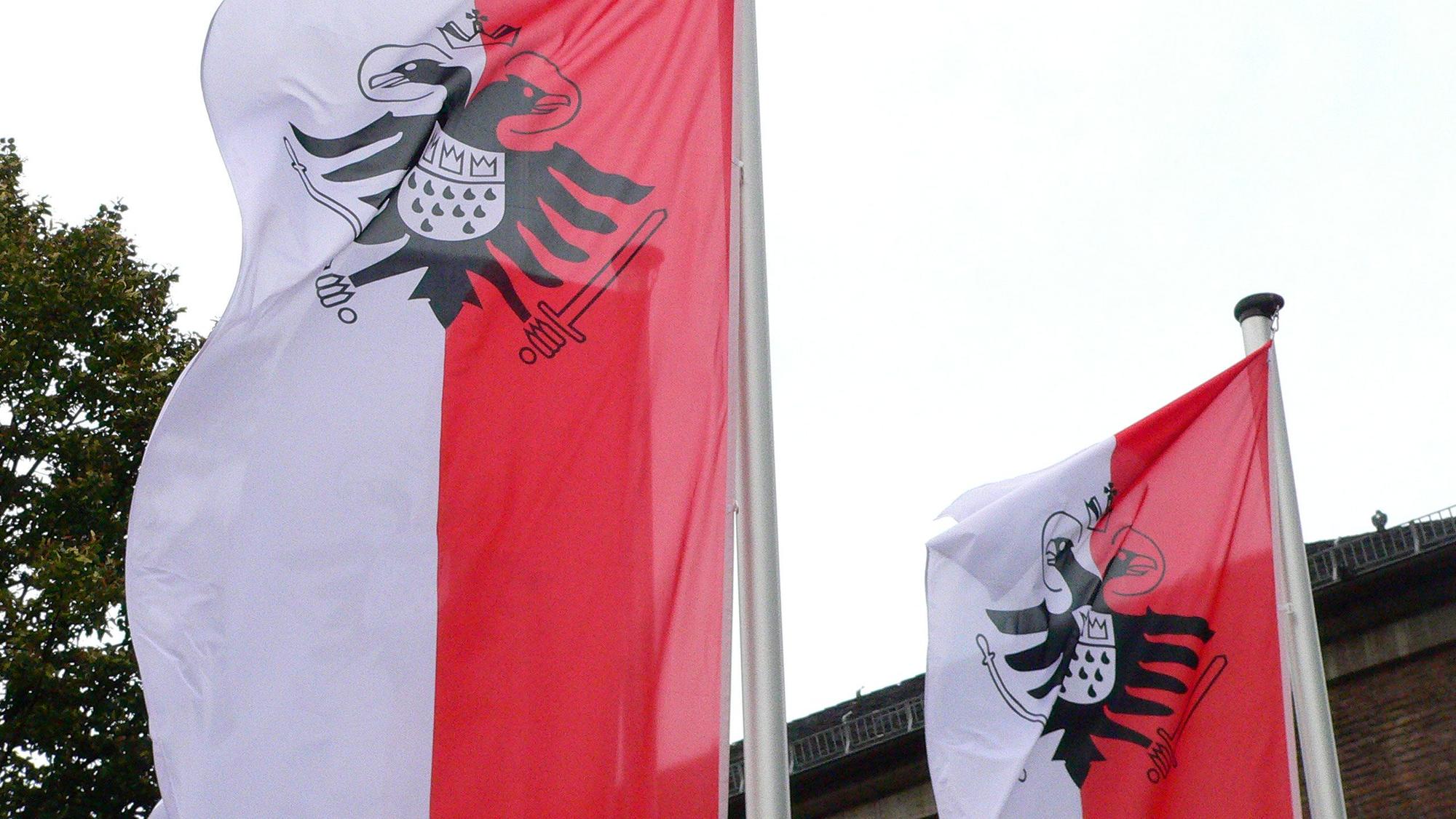 Fahnen wehen am Rathaus Köln.