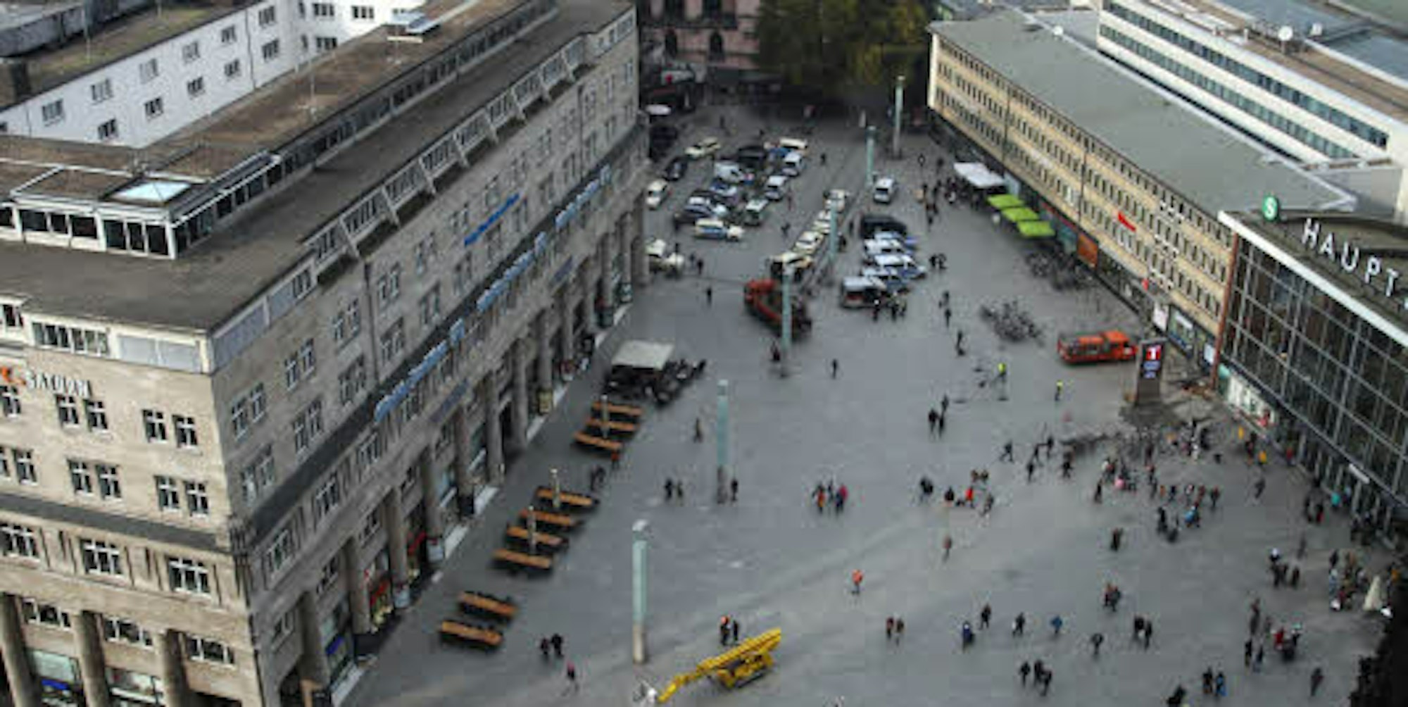 Namenlos: Der Bahnhofsvorplatz hat keine ausgewiesene Bezeichnung. So soll es laut Hermann Neuerburg, Eigentümer des Deichmannhauses (links im Bild) auch bleiben.