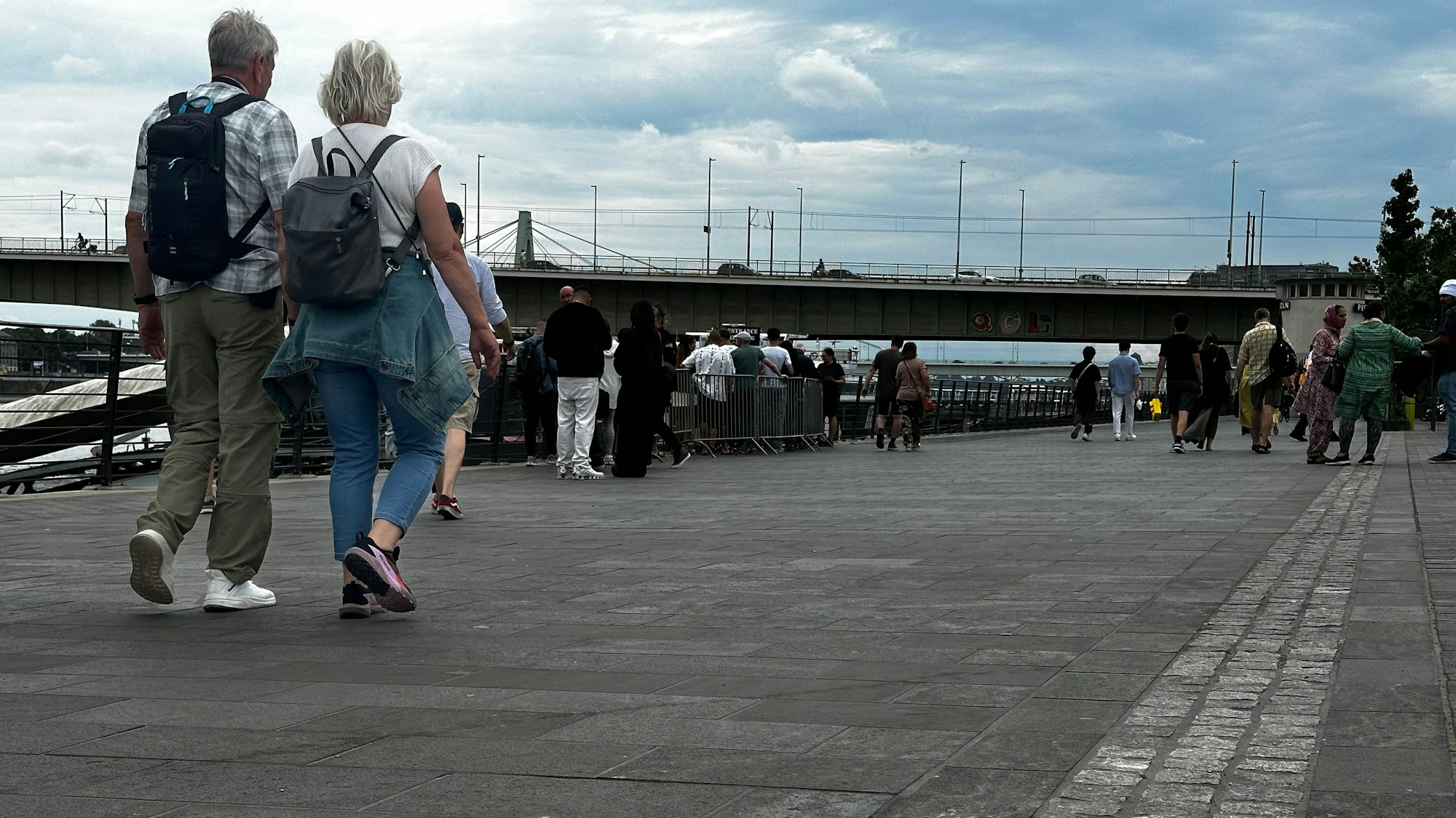 Sicherheitsstreifen für Sehbehinderte am Altstadtufer in Köln