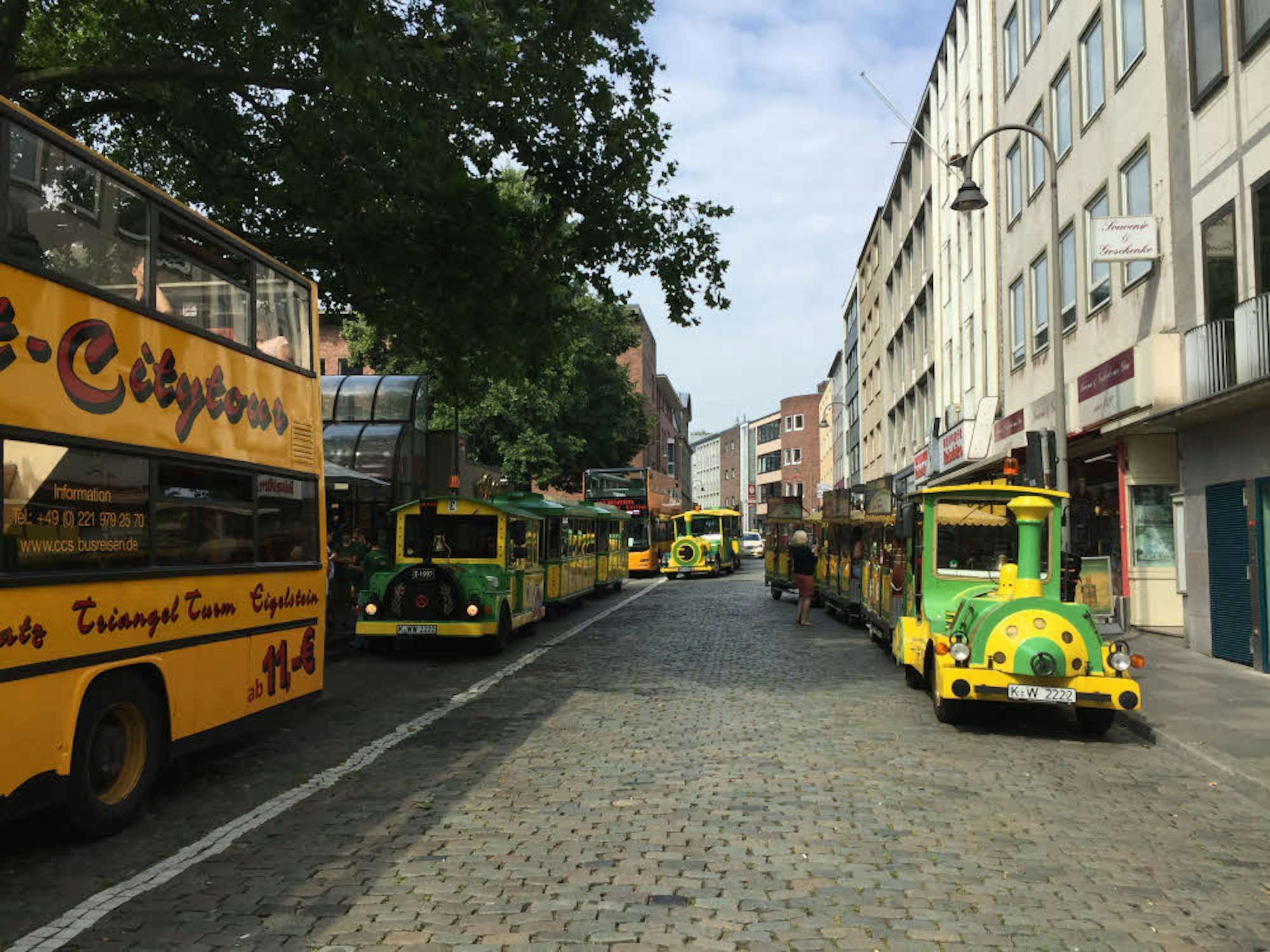 Tanja Wolters hält nichts von dieser Idee. „Sicher ist es manchmal chaotisch an der Burgmauer. Aber aus unserer Sicht funktioniert es reibungslos.“ Außerdem brauche die Bimmelbahn anders als gut sichtbare doppelstöckige Busse einen zentralen, gut einsehbaren Abfahrtspunkt. Den sieht sie vis-à-vis von Kölntourismus eher als an St. Andreas.