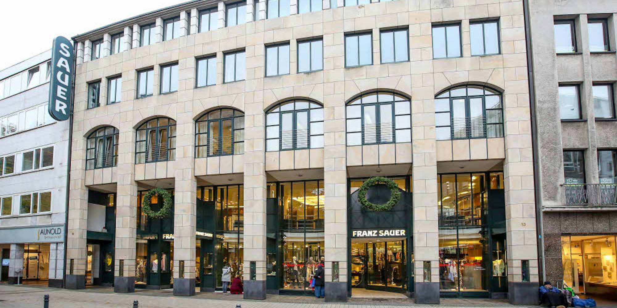 1987 ist das Franz-Sauer-Haus erbaut worden. Und schon der Unternehmensgründer trug diesen Namen, als er 1842, im Jahr, in dem der Zentral-Dombau-Verein entstand, in der Kleinen Budengasse eine Stickerei eröffnete. Er stammte aus Gustorf bei Grevenbroich. Heute werden auf fünf Etagen Mode, Pelze, Wäsche, Lederwaren und Accessoires verkauft. 80 Mitarbeiter hatte das Haus vor 15 Jahren.