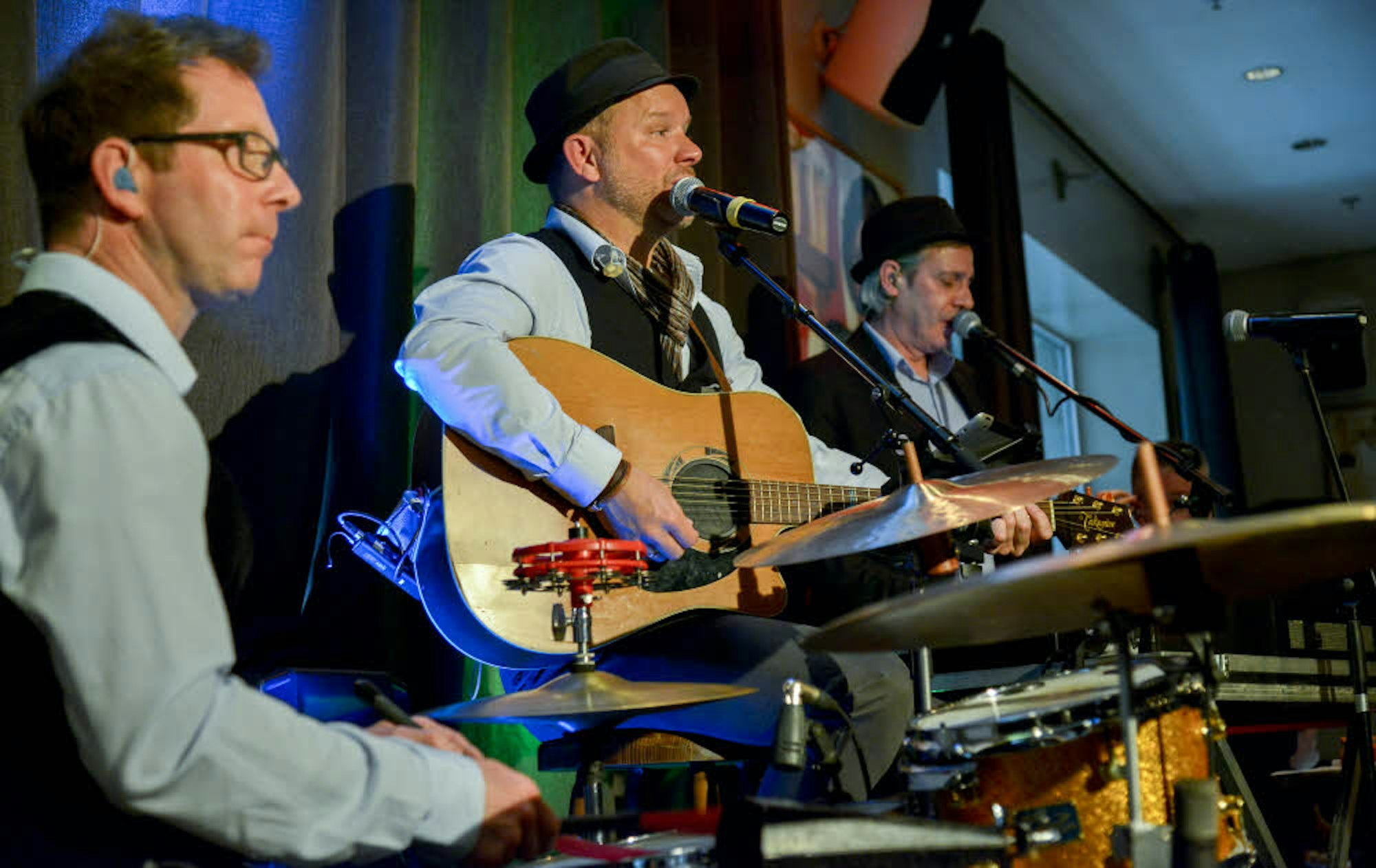 Die Zuschauerrolle wird Hannes Blum (l.) nach der nächsten Karnevalssession einnehmen, denn dann hört der Gründer der Band „Blom un Blömcher“ auf. Sein Sohn Oliver (mit Gitarre) macht mit Bernd Kreuz (r.) und Schlagzeuger Christoph Freier weiter.