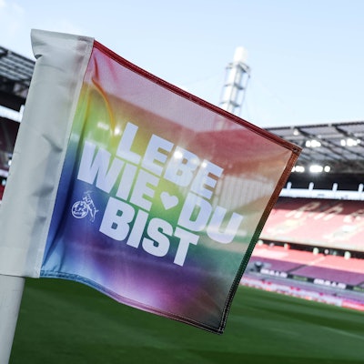 Zeichen für Vielfalt: Das Rheinenergie-Stadion erstrahlt in Regenbogenfarben.