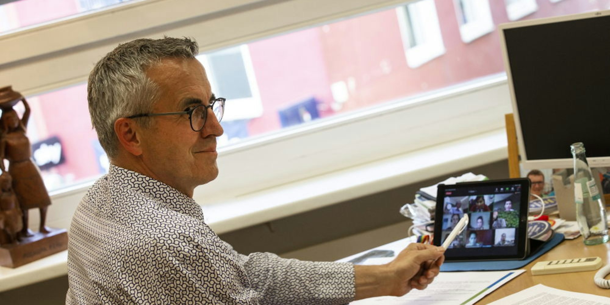 Bürgermeister Andreas Wolter (Grüne) sitzt in seinem Büro im Rathaus und hört die Live- Berichte. Er hat am Mittwoch zur Video-Pressekonferenz eingeladen. Als Vorsitzender der Klimapartnerschaft Köln-Yarinacocha kennt er die Region gut. Bei seinen Reisen sind Freundschaften entstanden. „Ich höre und sehe, wie die Menschen dort leiden. Da kann man nicht wegsehen“, sagt Wolter.