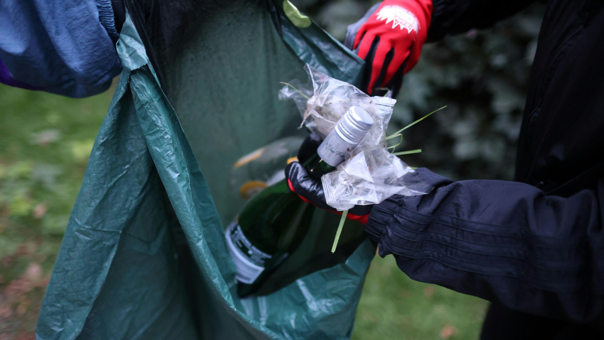 Glasflaschen und Verpackungsmüll - auch im Grüngürtel sammelt die Initiative regelmäßig.
