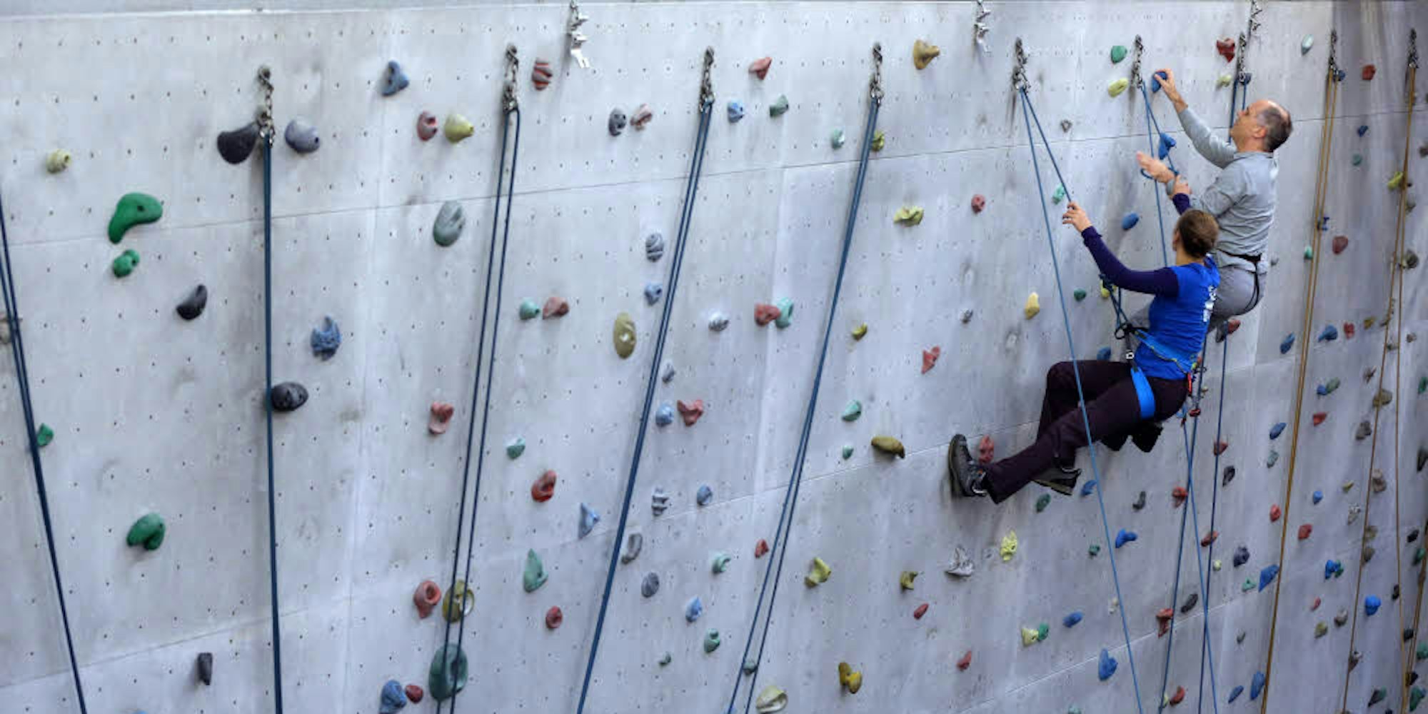 Weiter, immer weiter: Auch blinde Menschen können mit den Helfern des Deutschen Alpenvereins in der Kletterhalle steile Wände erklimmen.