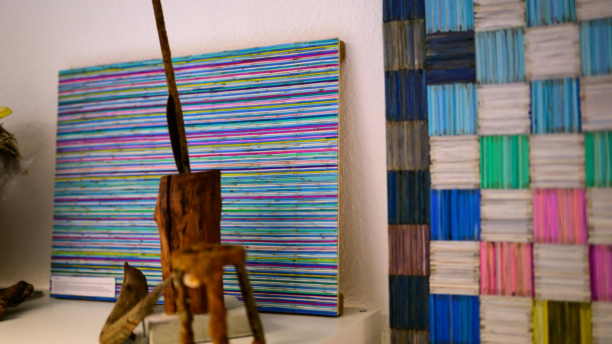 Dass Müll auch schön sein kann, beweist Künstlerin Barbara Mekhneche: Sie hat aus ihren über 10 000 in den Rheinauen gesammelten Plastikwattestäbchen und aus etlichen Feuerzeugen Kunstwerke erschaffen, die an das Richterfenster im Dom erinnern. Zum Schmunzeln sind etliche ausgestellte Flaschenpost-Briefe, die im Rhein gefunden wurden, nachdenklich machen die vielen Einwegspritzen. Manchmal verständigen die Müllsammler auch die Polizei: Auch Gaspistolen oder aufgesprengte Tresore haben sie bereits gefunden.